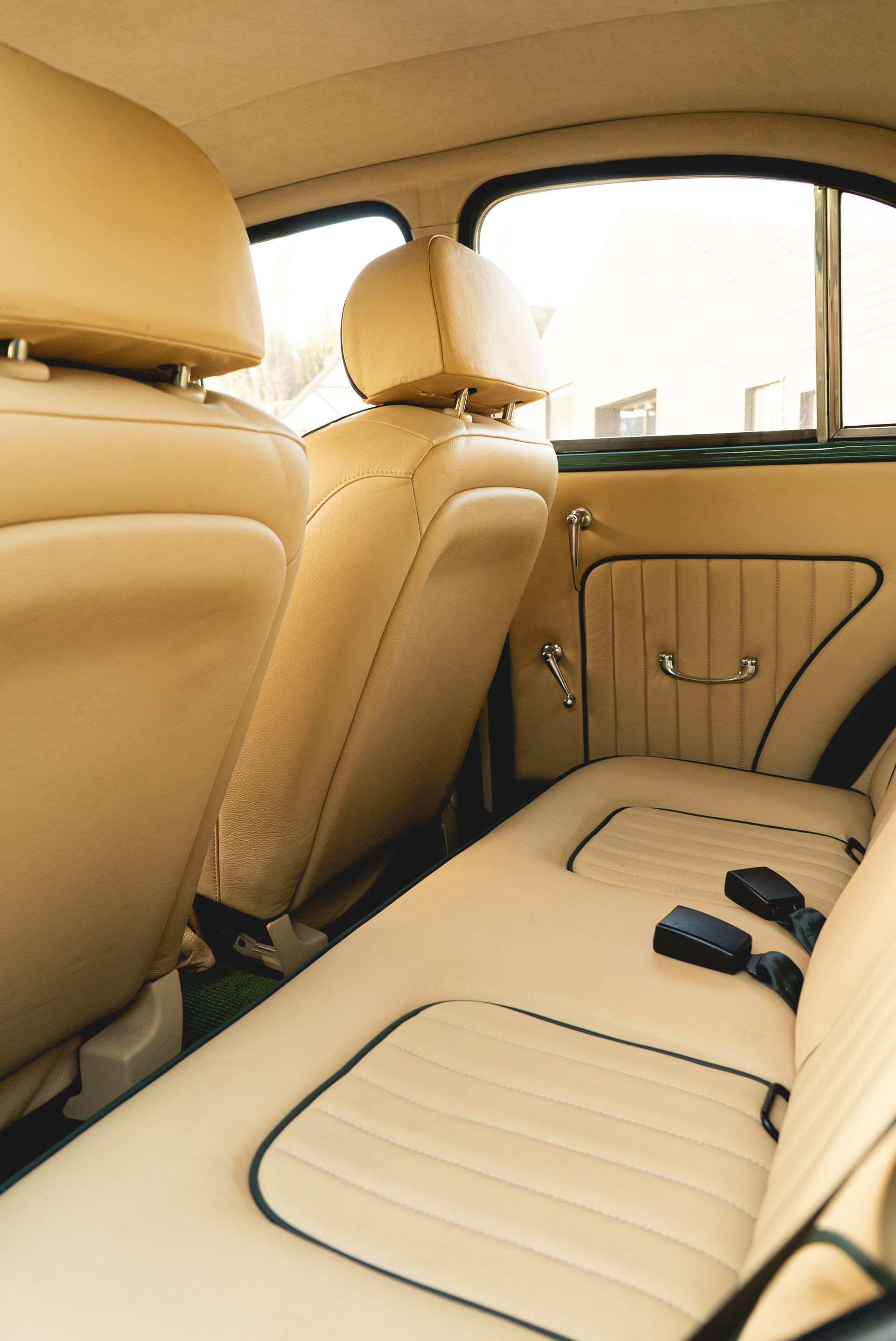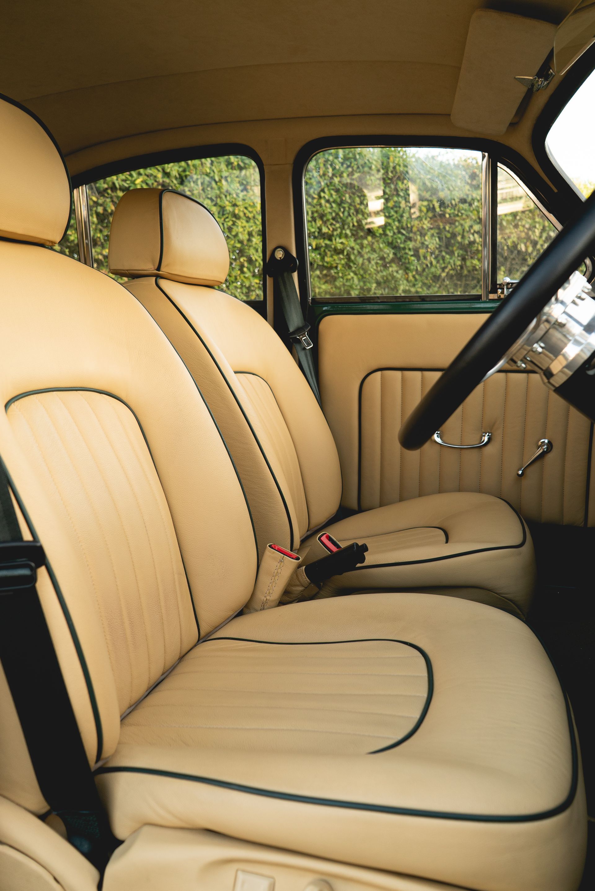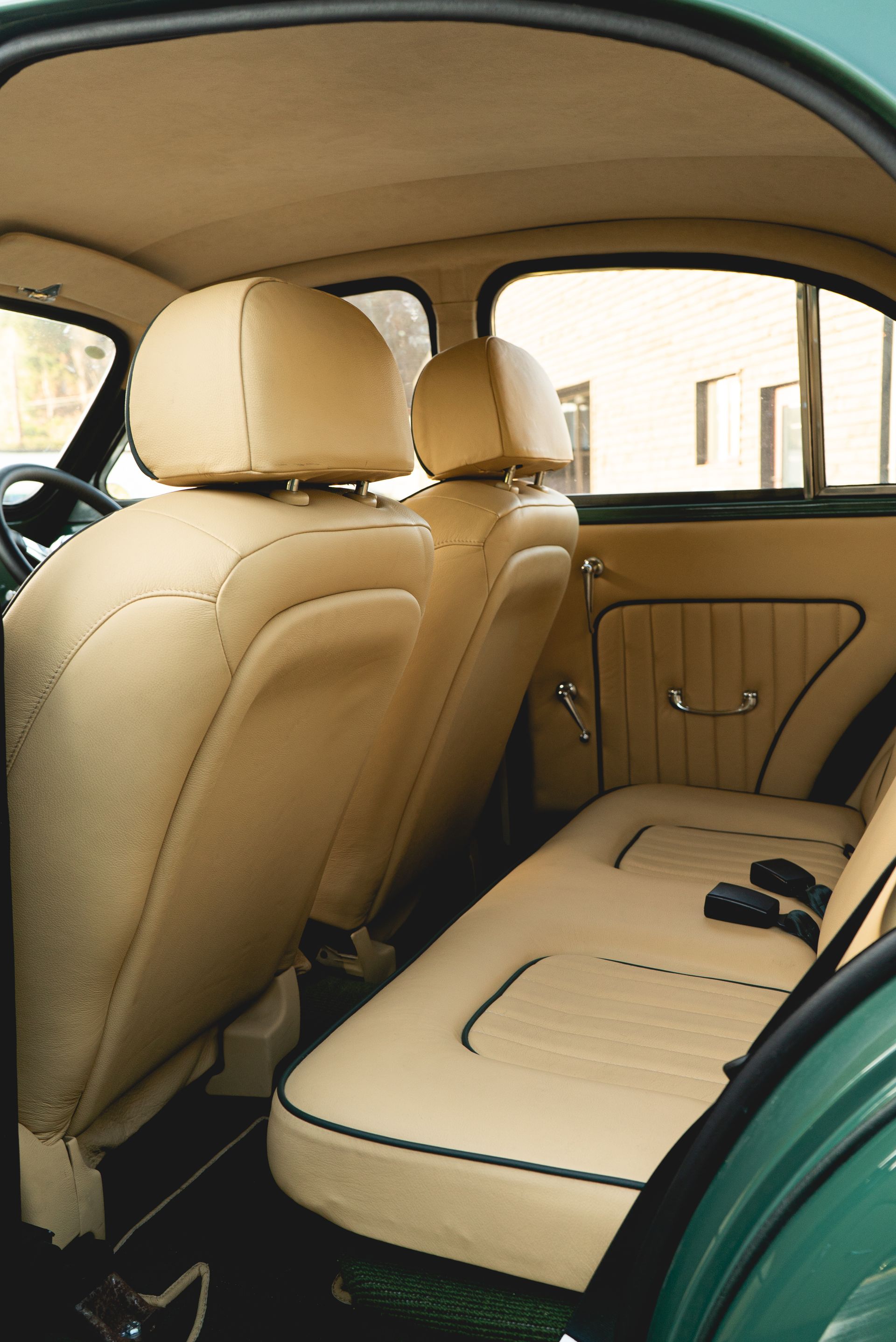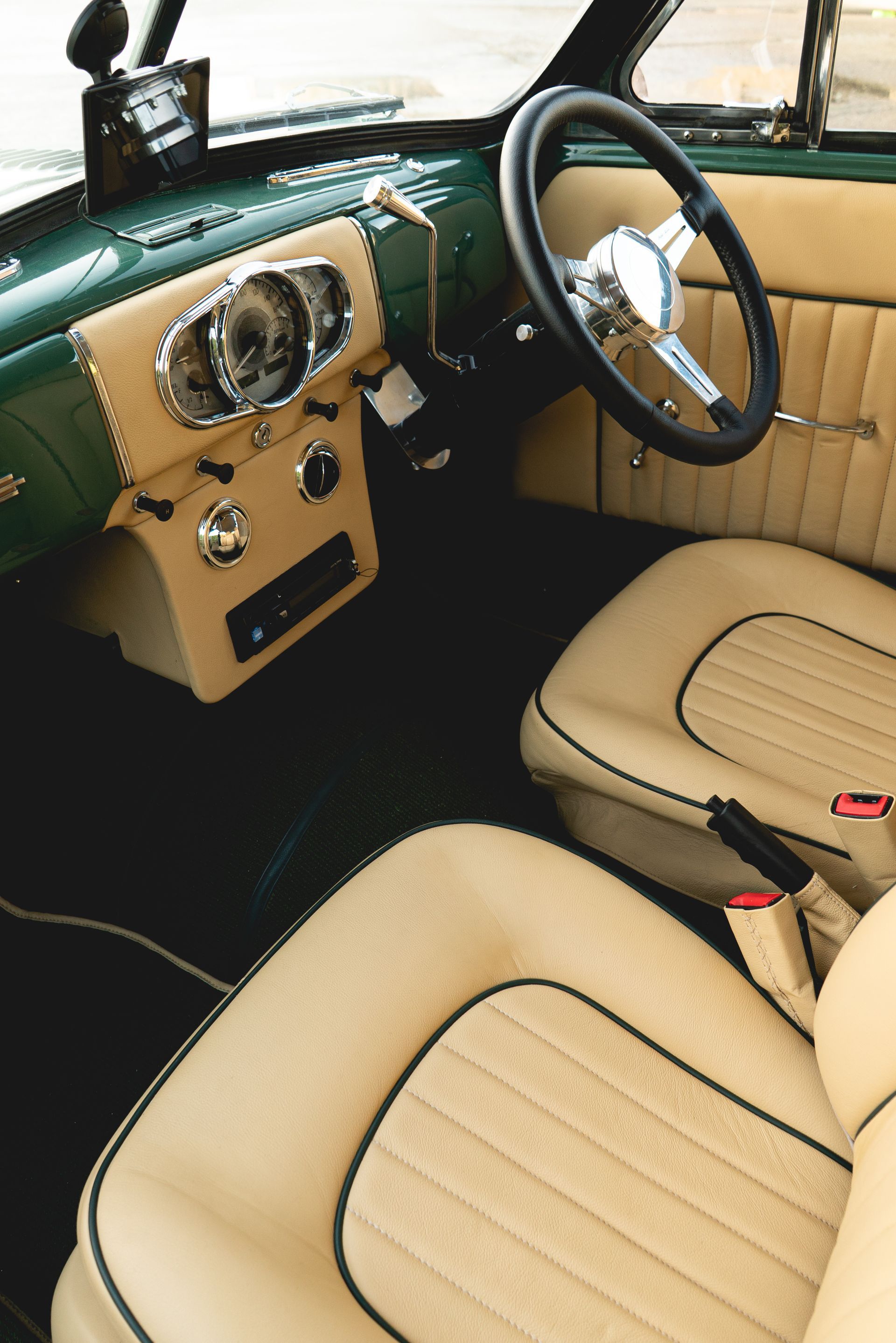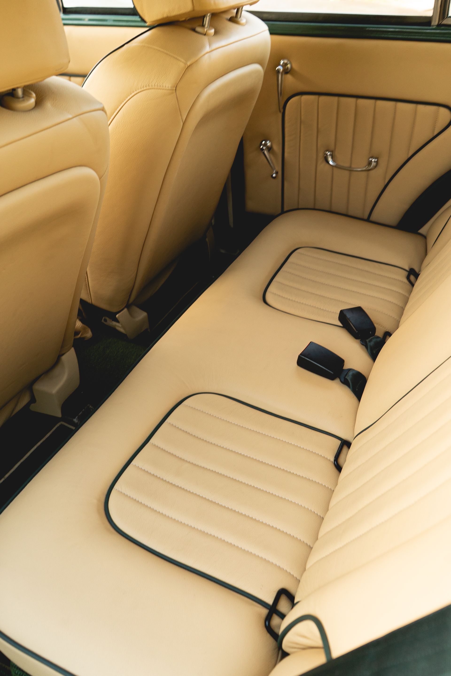 The door cards were also styled to match with the seats, with matching leather, pleated centres, and green piping, this was achieved to great effect. Grab handles, window winders and side mirror adjustment levers were also refurbished and polished up nicely.