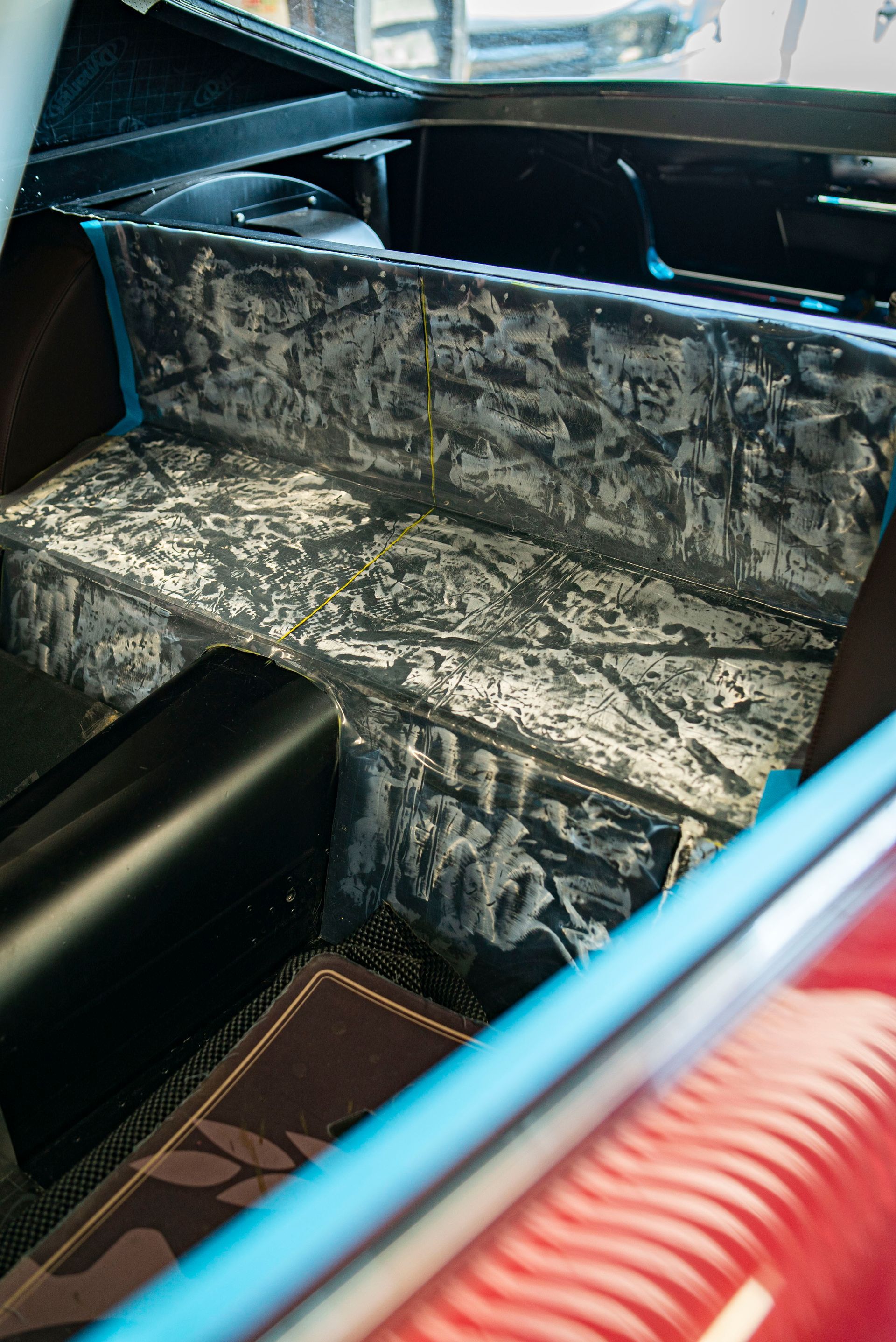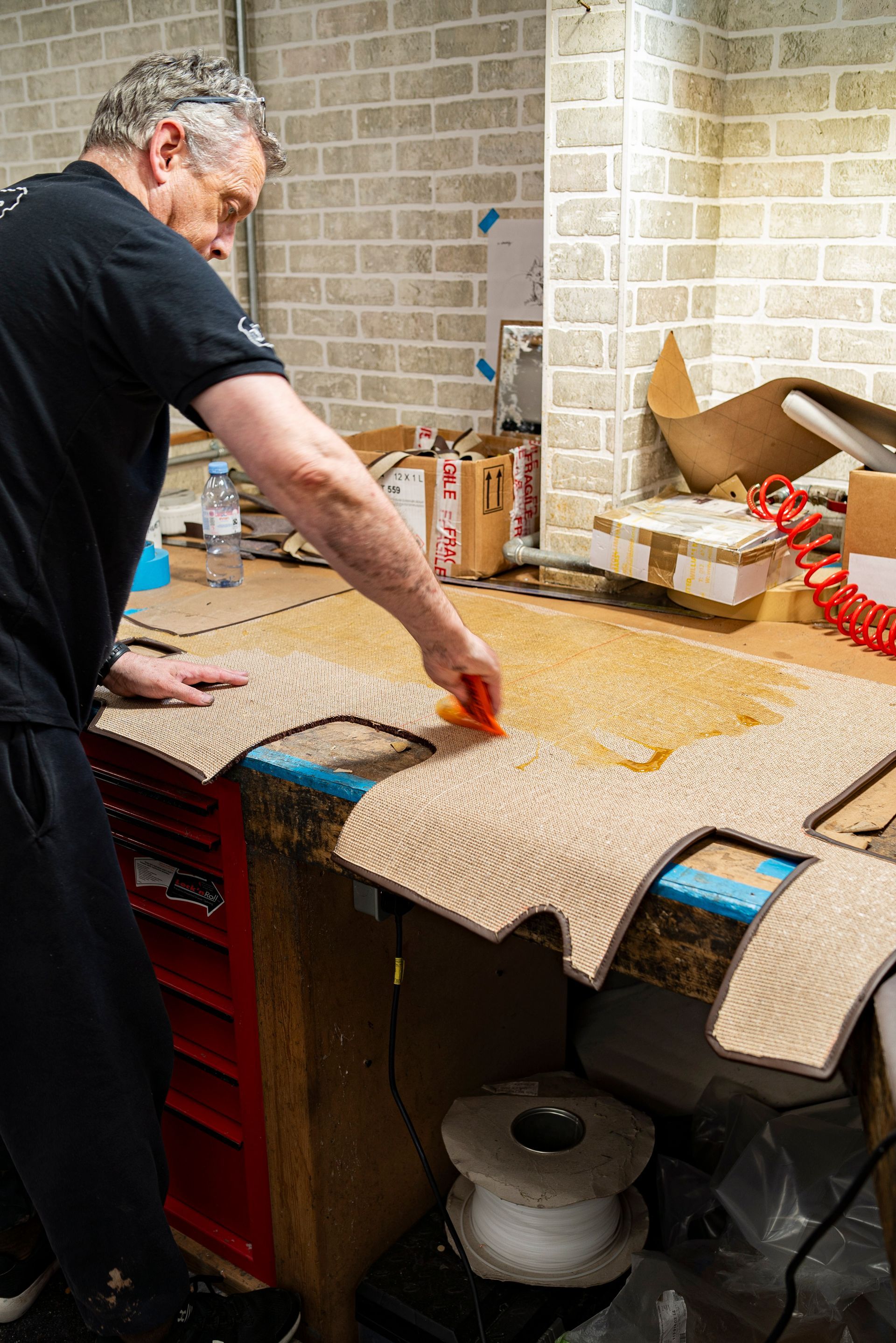 Before any material can be placed down, we need to sound deaden the vehicle. We only use the best, and the best is Dynamat Europe. We are using two of their products on this project; Dynaliner which was used inside the roof, and in both driver and passenger footwells. Dynamat is the second and was used in doors, rear quarters, rear bulkhead, and tunnel. These products are great for preventing road noise and vibrations, making the vehicle feel much more solid and a more pleasant place to be.