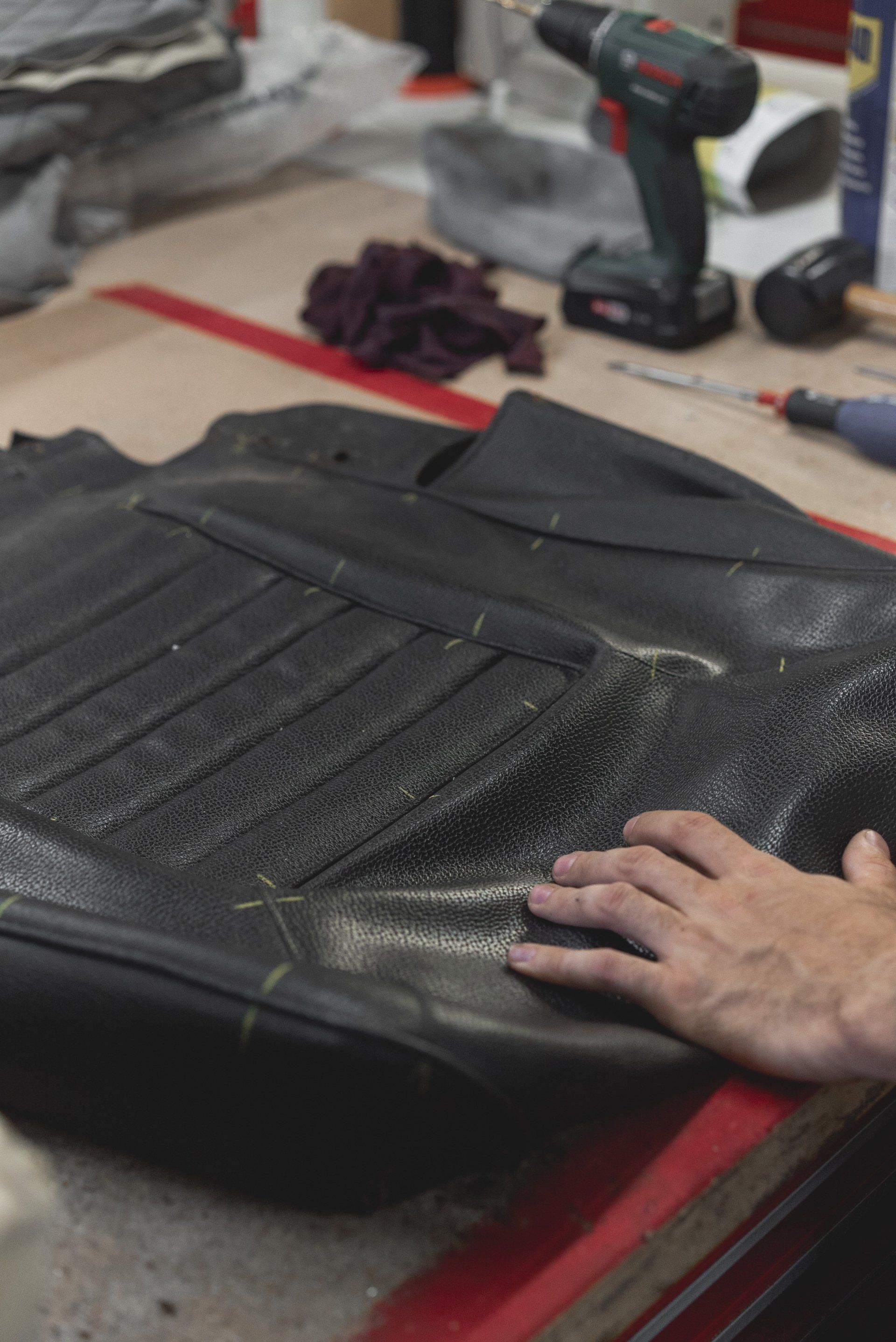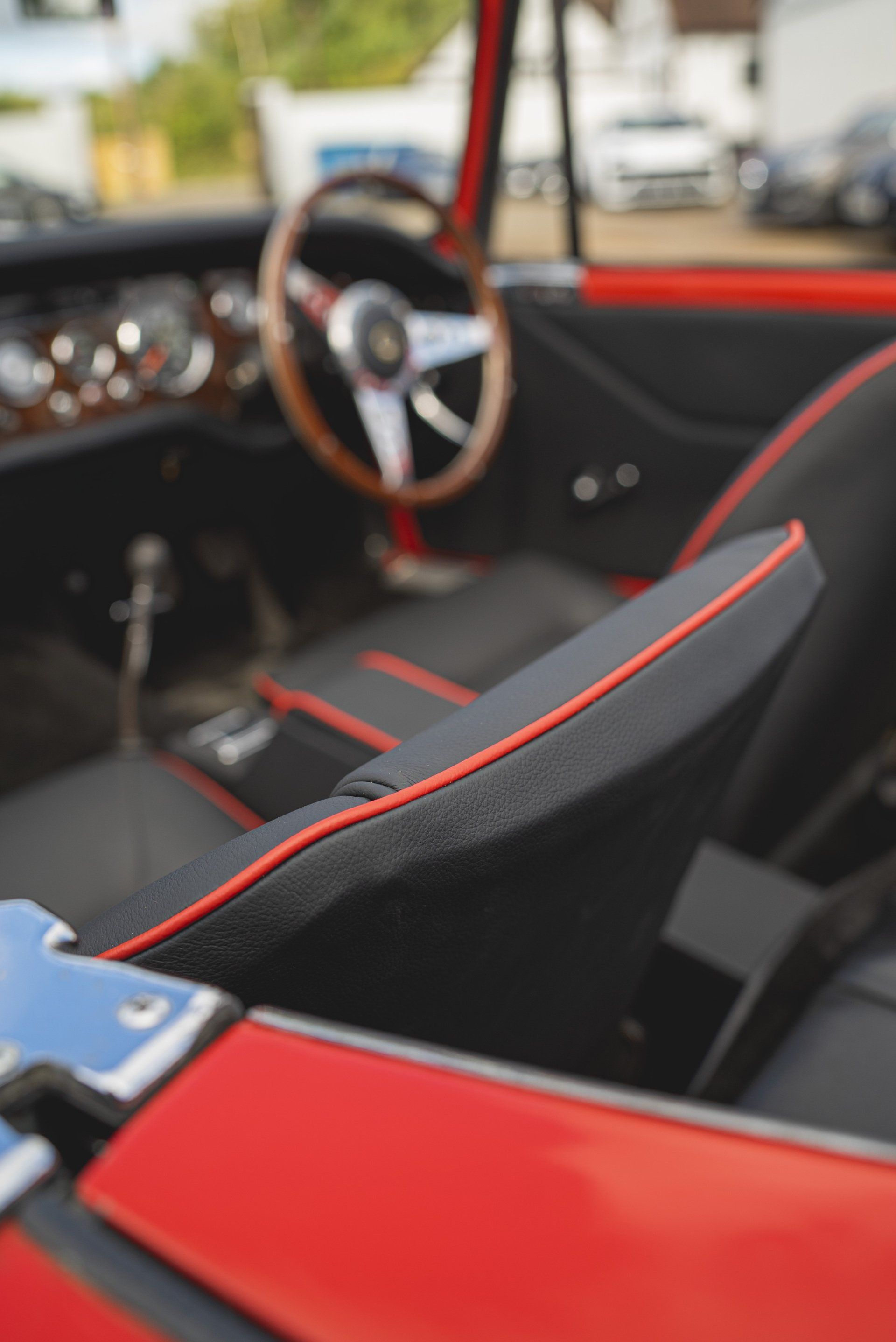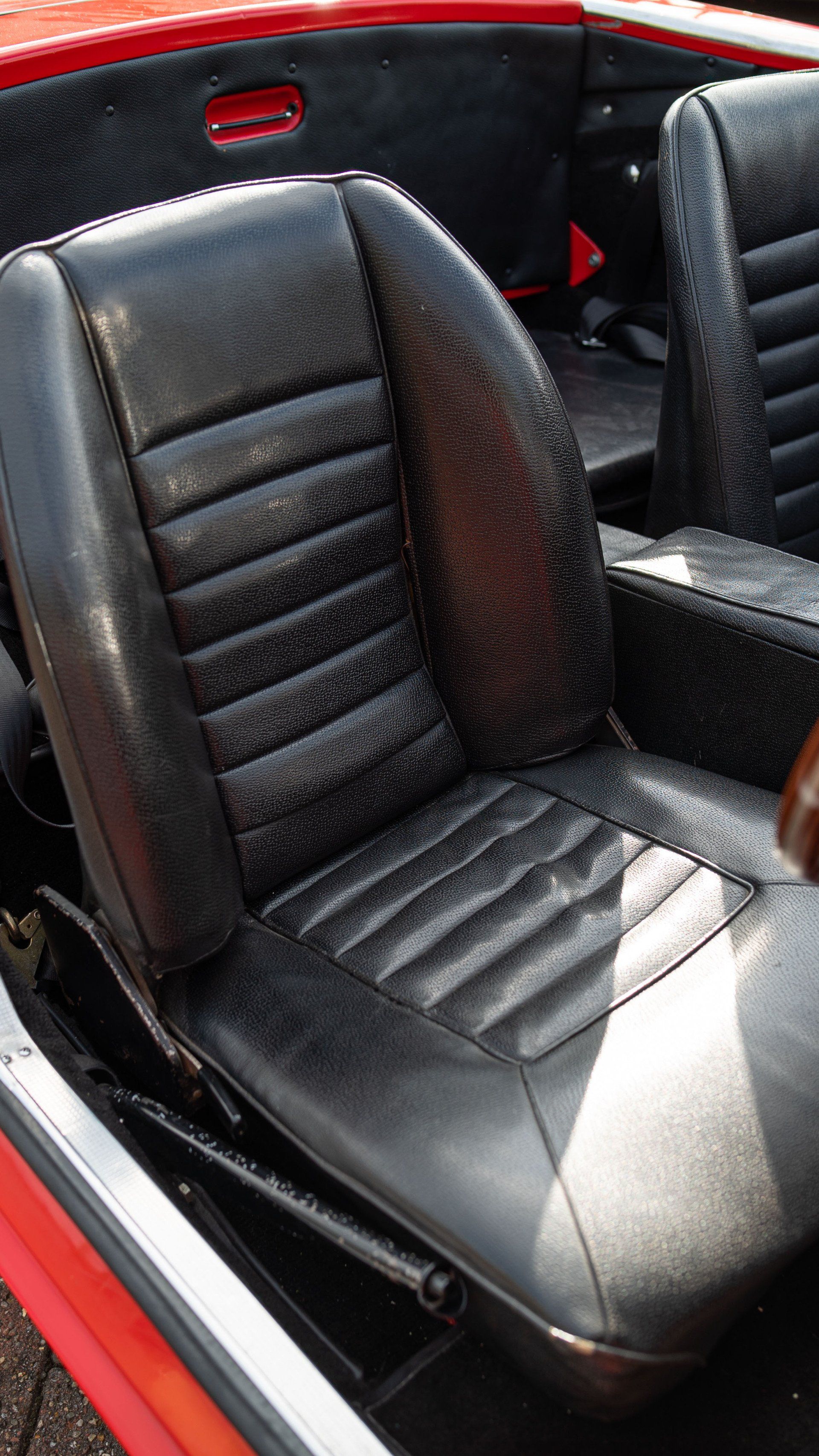 Sunbeam Tiger which has had door cards, seats and centre console retrimmed in black leather from the Autocalf range from @ukhideco. Customer requested some red piping to match the vibrant colour of the car. As you can see from the images showing the condition prior to visiting d:class, some areas of the interior were most certainly looking rather tired. This has now all been corrected with some lovely new leather and the red piping really does compliment the refreshed interior.