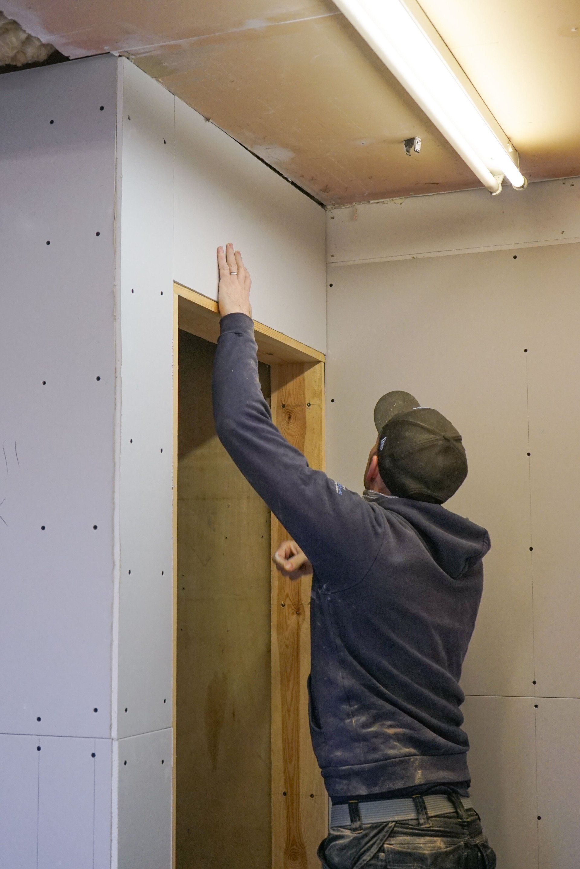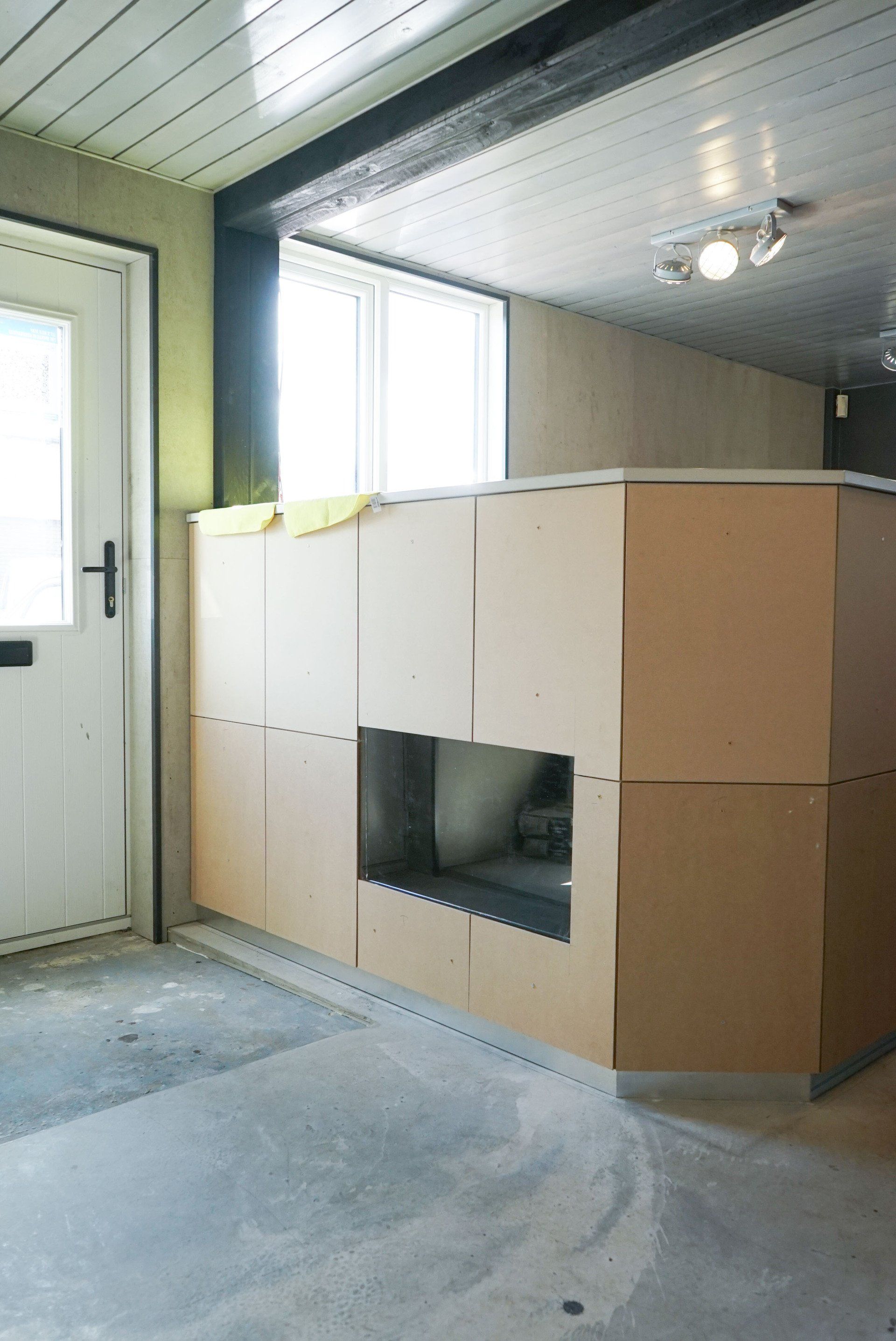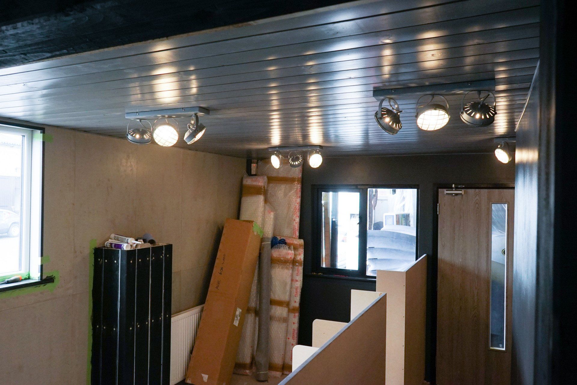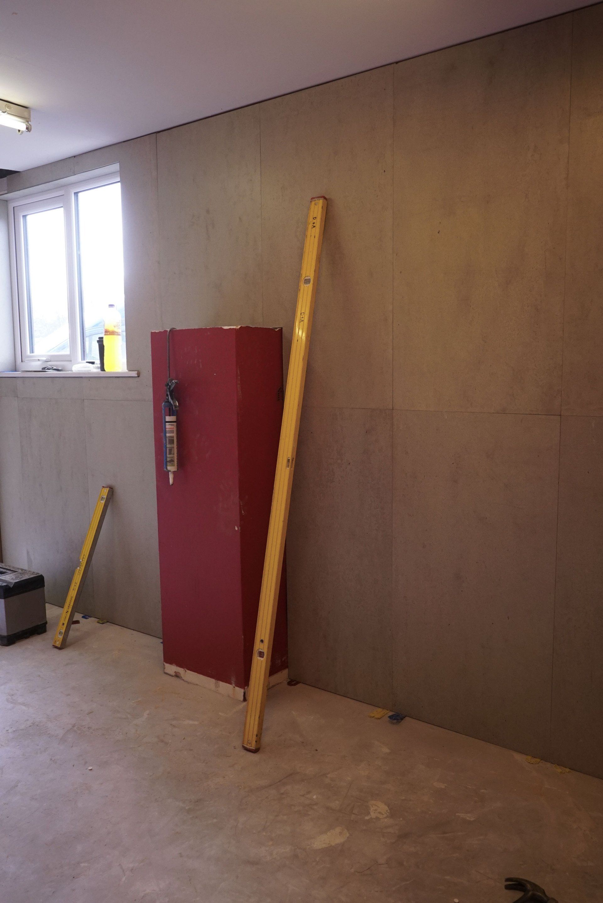 The first step was to knock through the front wall to allow for a customer entrance. After this, the floors had to be re concreted to ensure a flat even surface with an additional slope for disabled access. Once this was done we began prepping the walls for the interior panelling.
