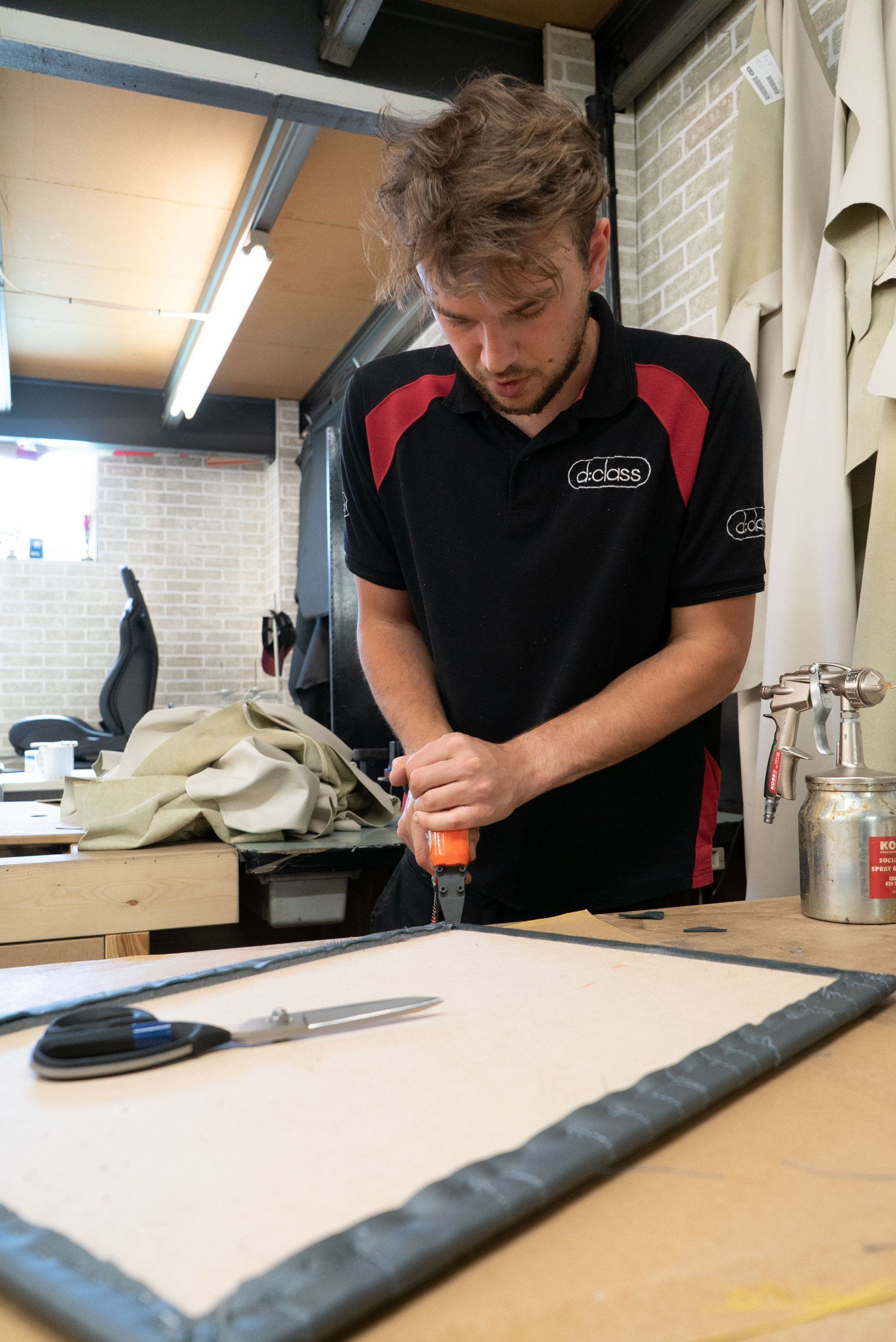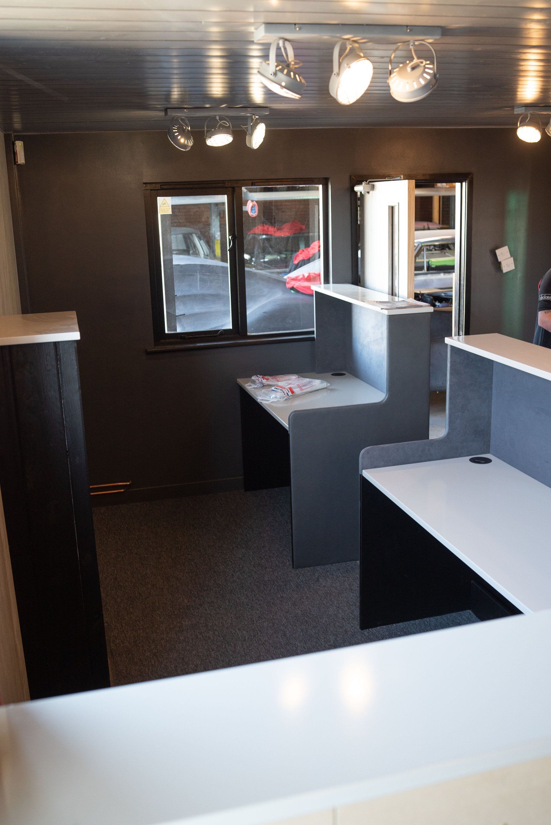 The new panelling was put up in the new customer waiting area, we have never been able to offer comfortable seating for customers until now. These panels are matching those that are in our hood room to keep a matching theme throughout the process. Painting followed next this with our new d:class colour scheme of dark grey.