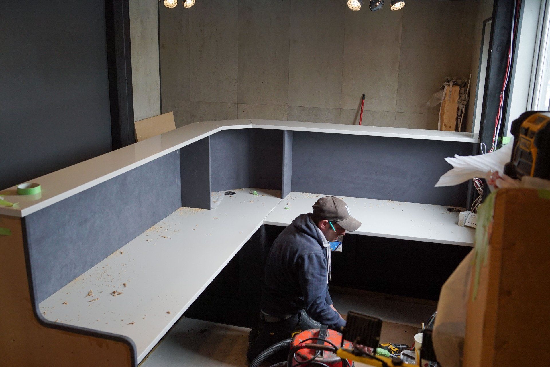 Dan from D and A Carpentry then began creating our new reception counter tops and desks from scratch.