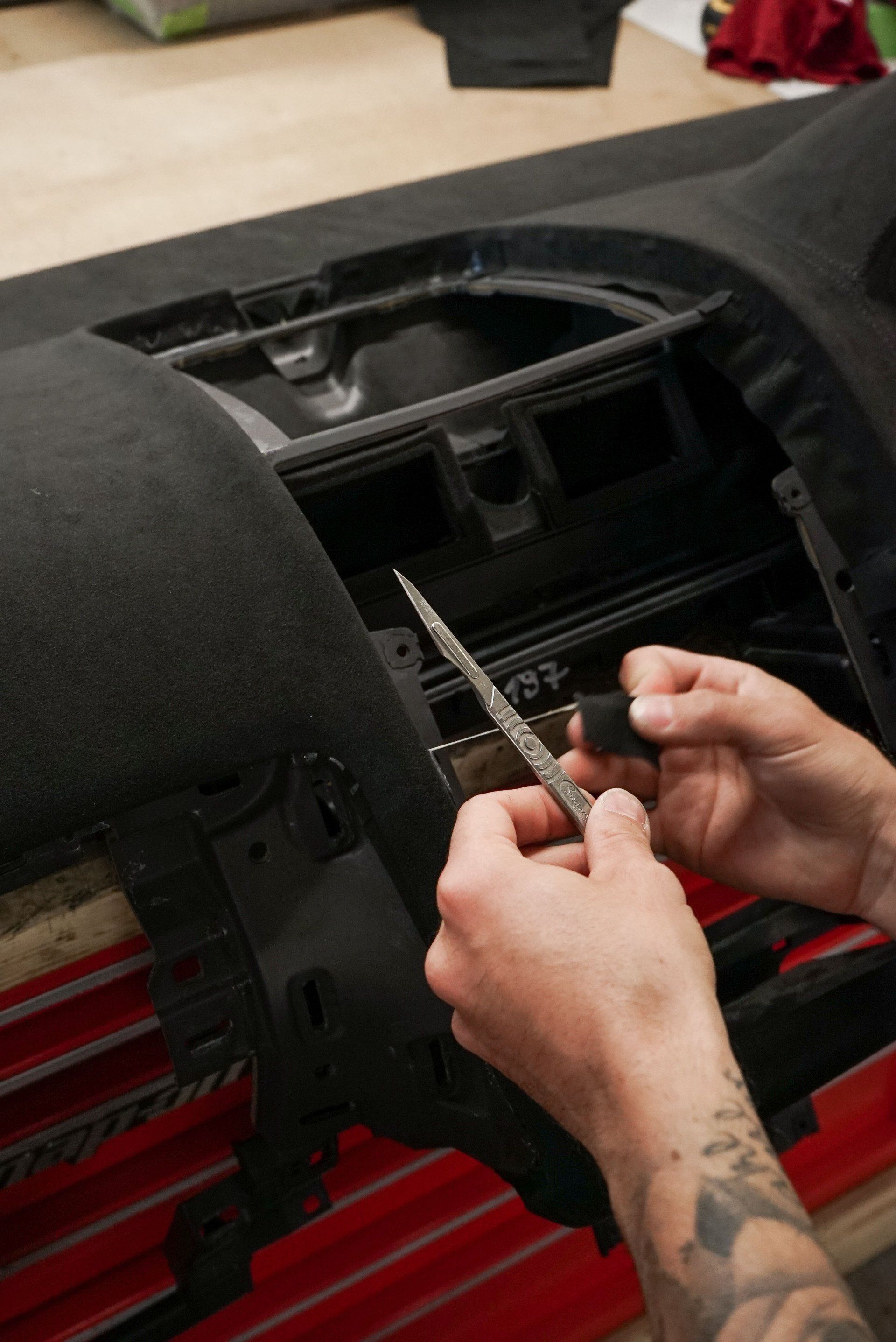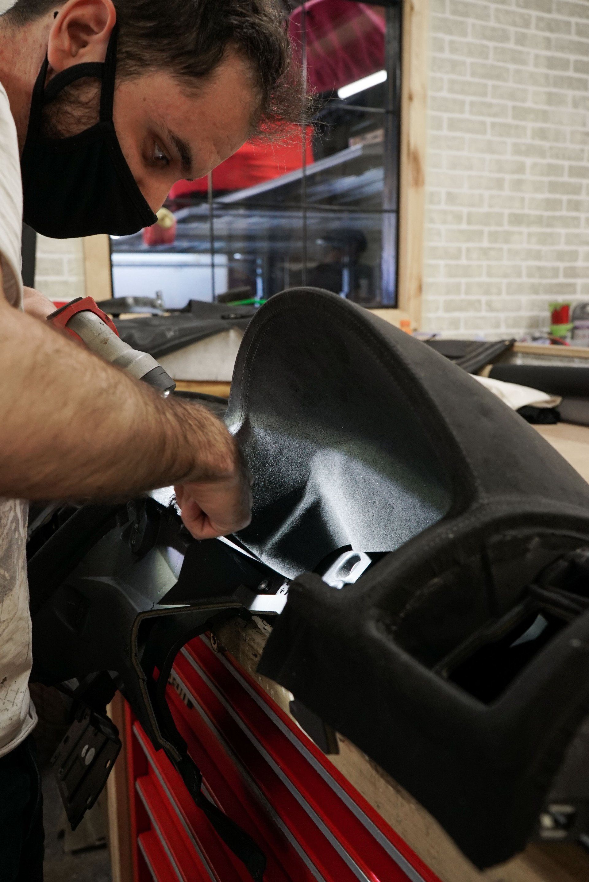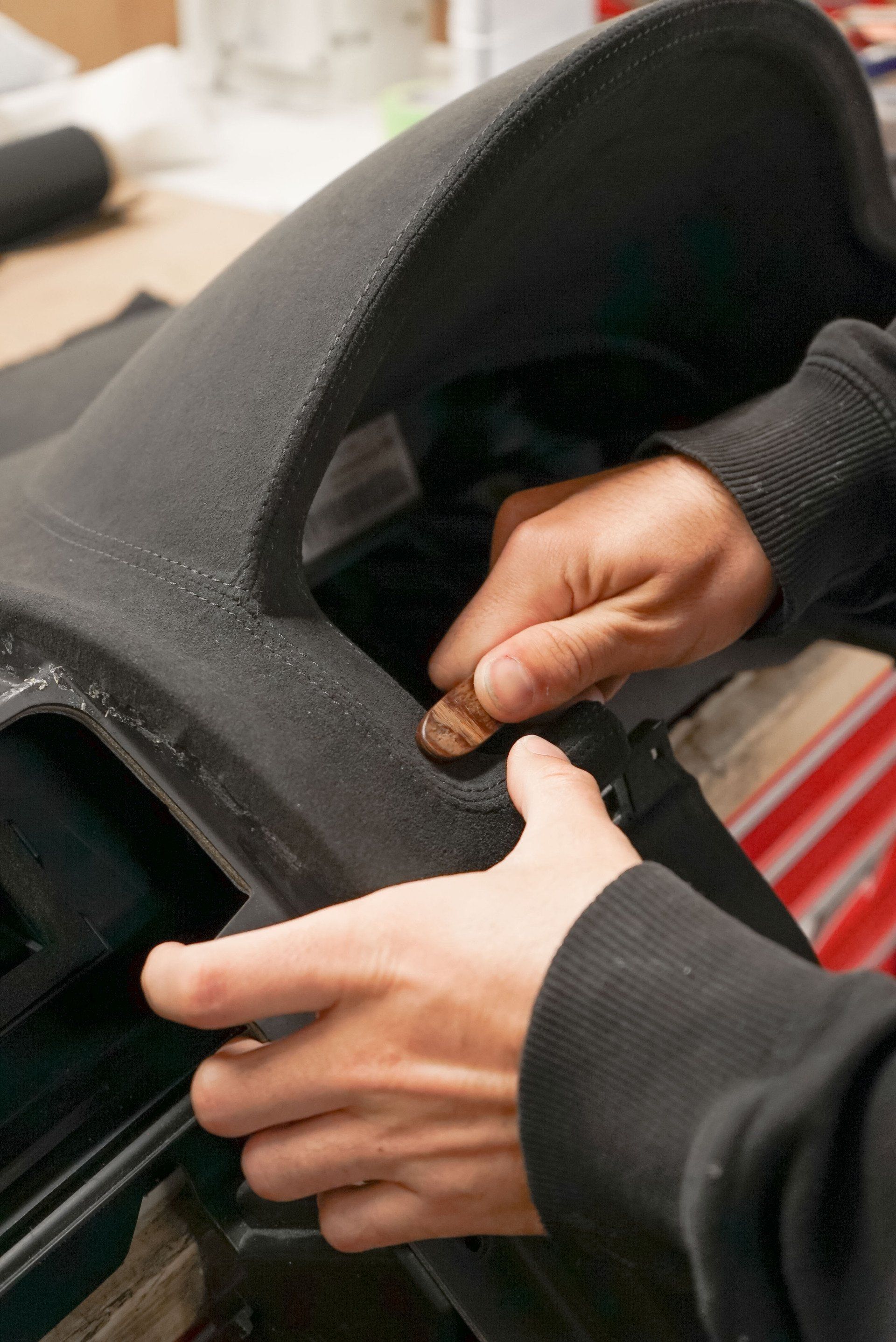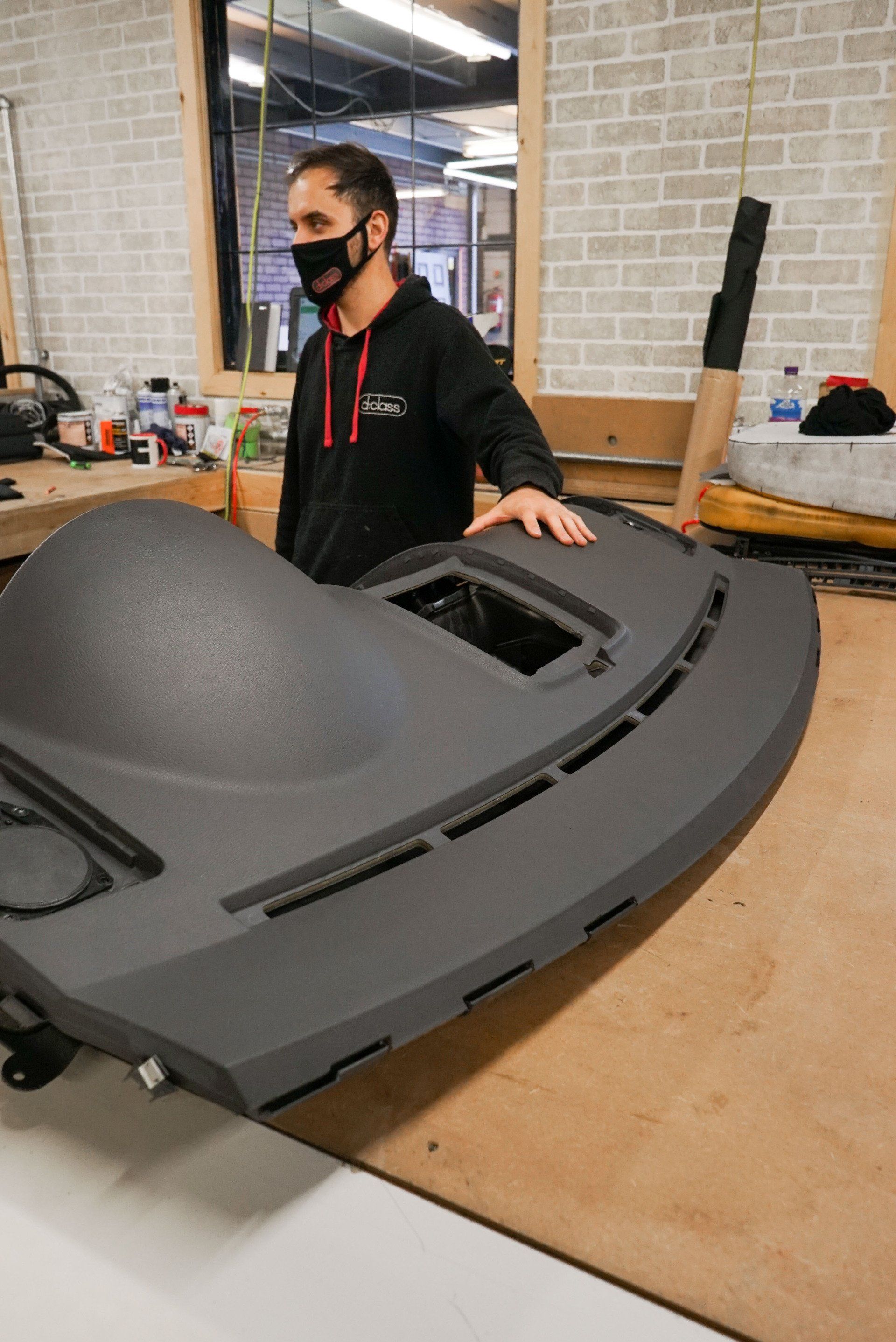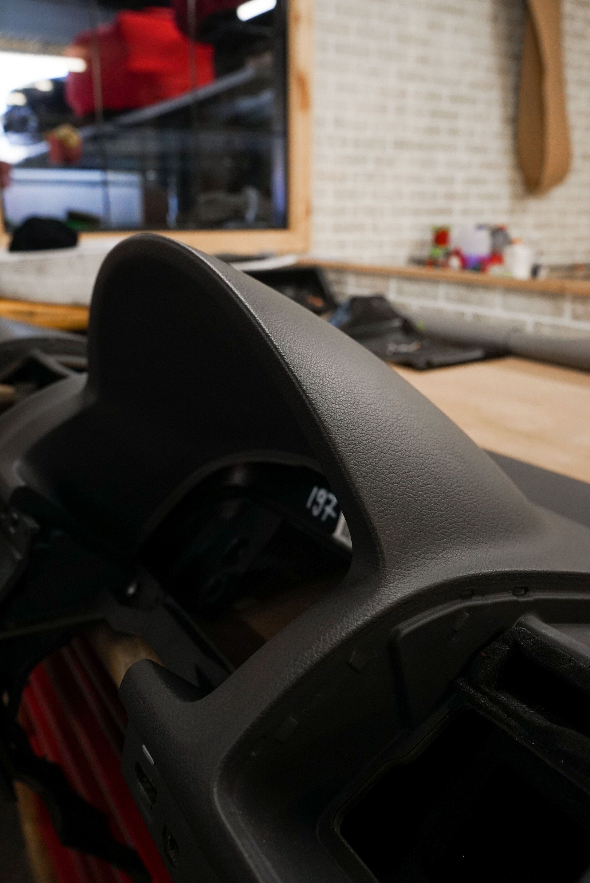 Here at d:class we are always happy to help our customers when they like to work on their own vehicles. Here we have a dashboard from a Volkswagen Touran that we trimmed that was provided to us. We completed this retrim to our customers required specific specifications which was then going into his Volkswagen Caddy. He has done a superb job at fitting it all in himself and was over the moon with the finish that we provided. We're sure you can agree that it makes it a lot nicer environment to be in compared to the original grey plastic.