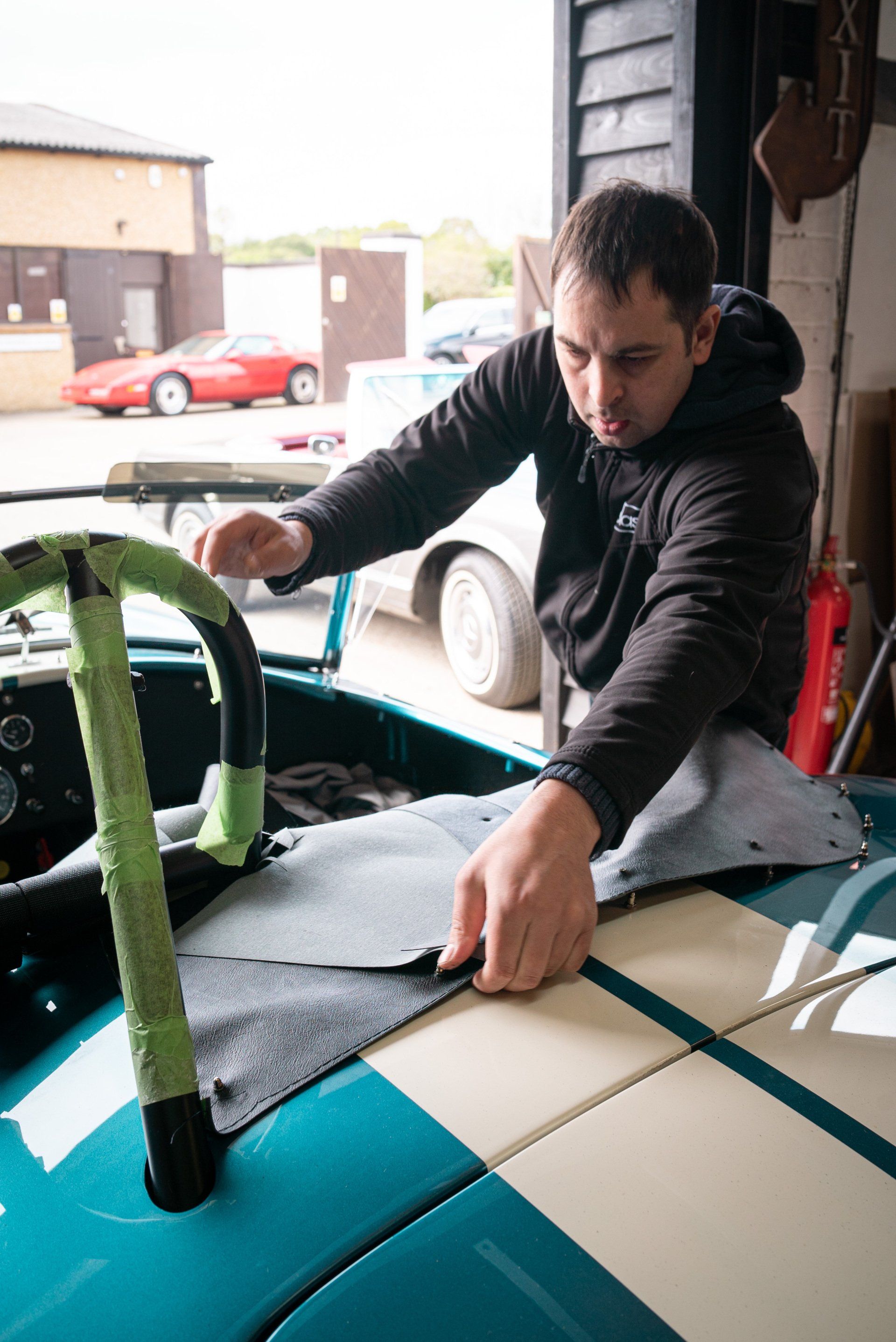 Here we have a fully custom made tonneau cover, a popular trimming request for these AC Cobra's which protects your interior from getting wet if you find yourself caught out in the rain.