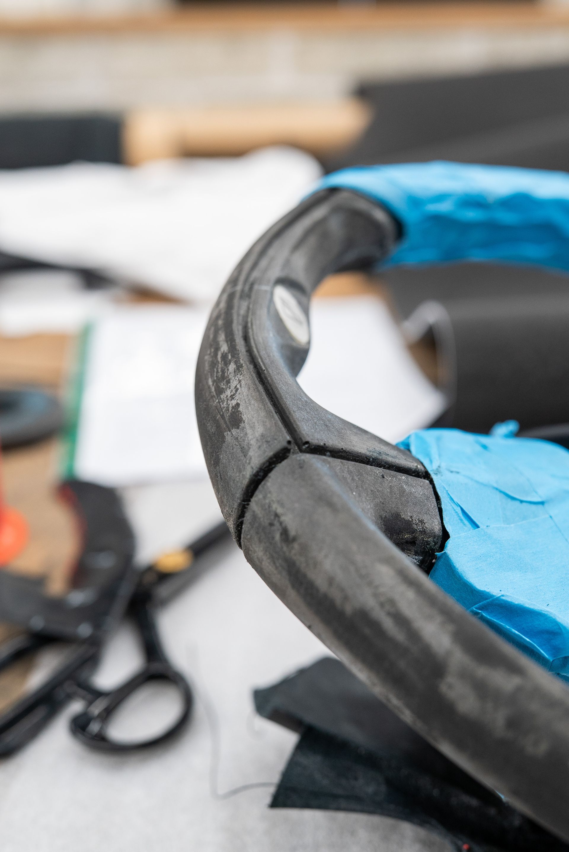 Once complete, the wheel was refitted with new buttons before the car headed out for a photoshoot, making the most of one of the UK’s rare sunny days.