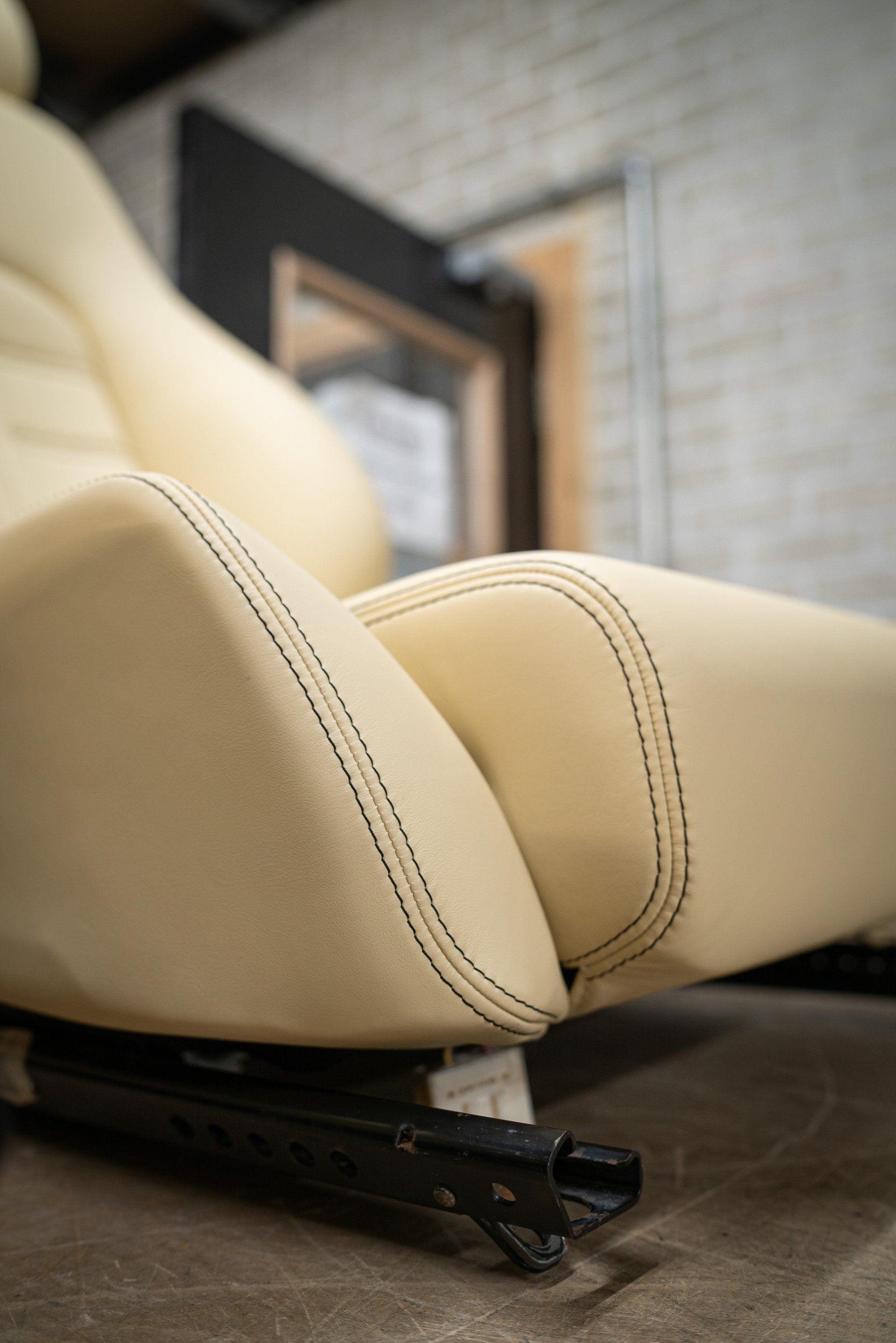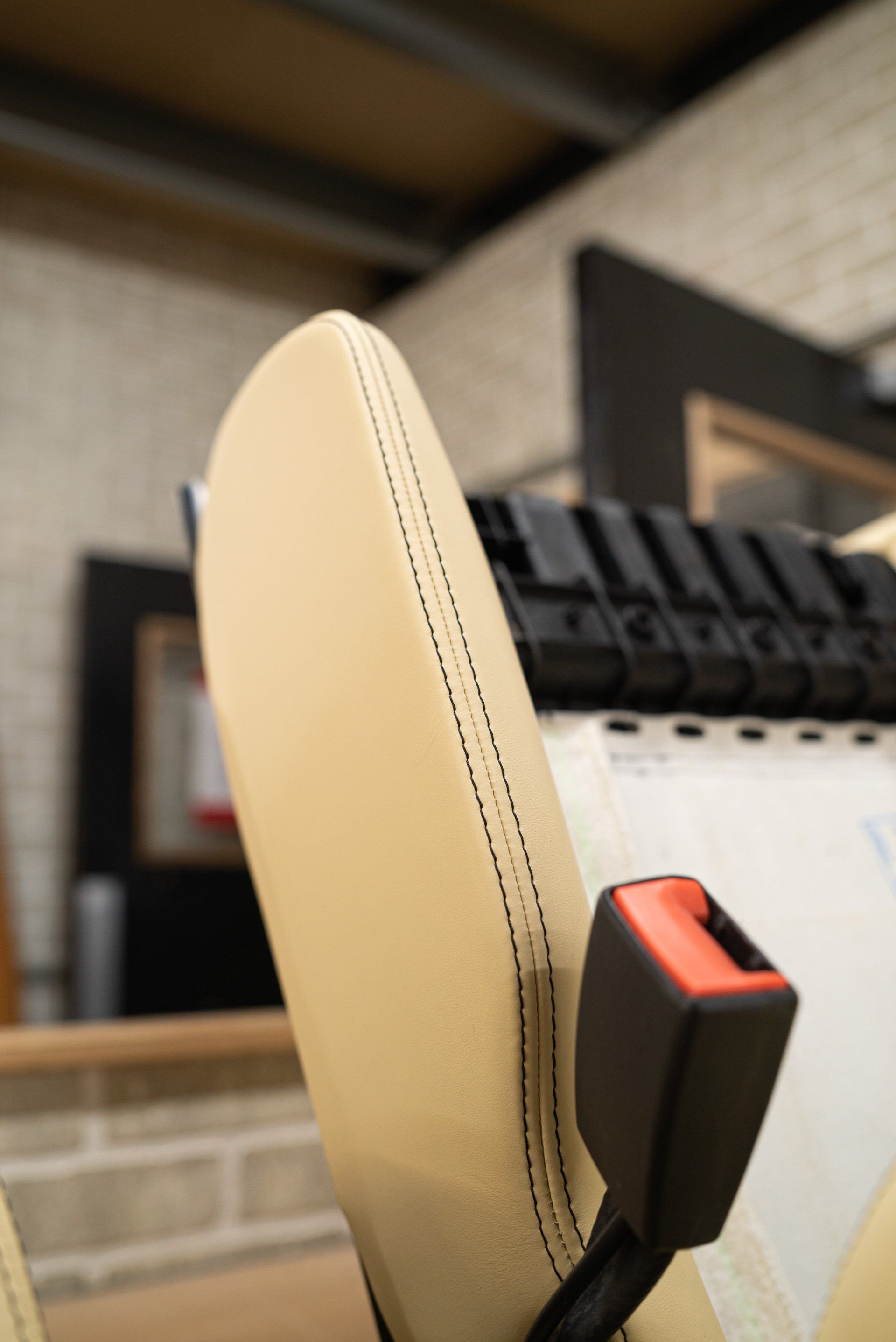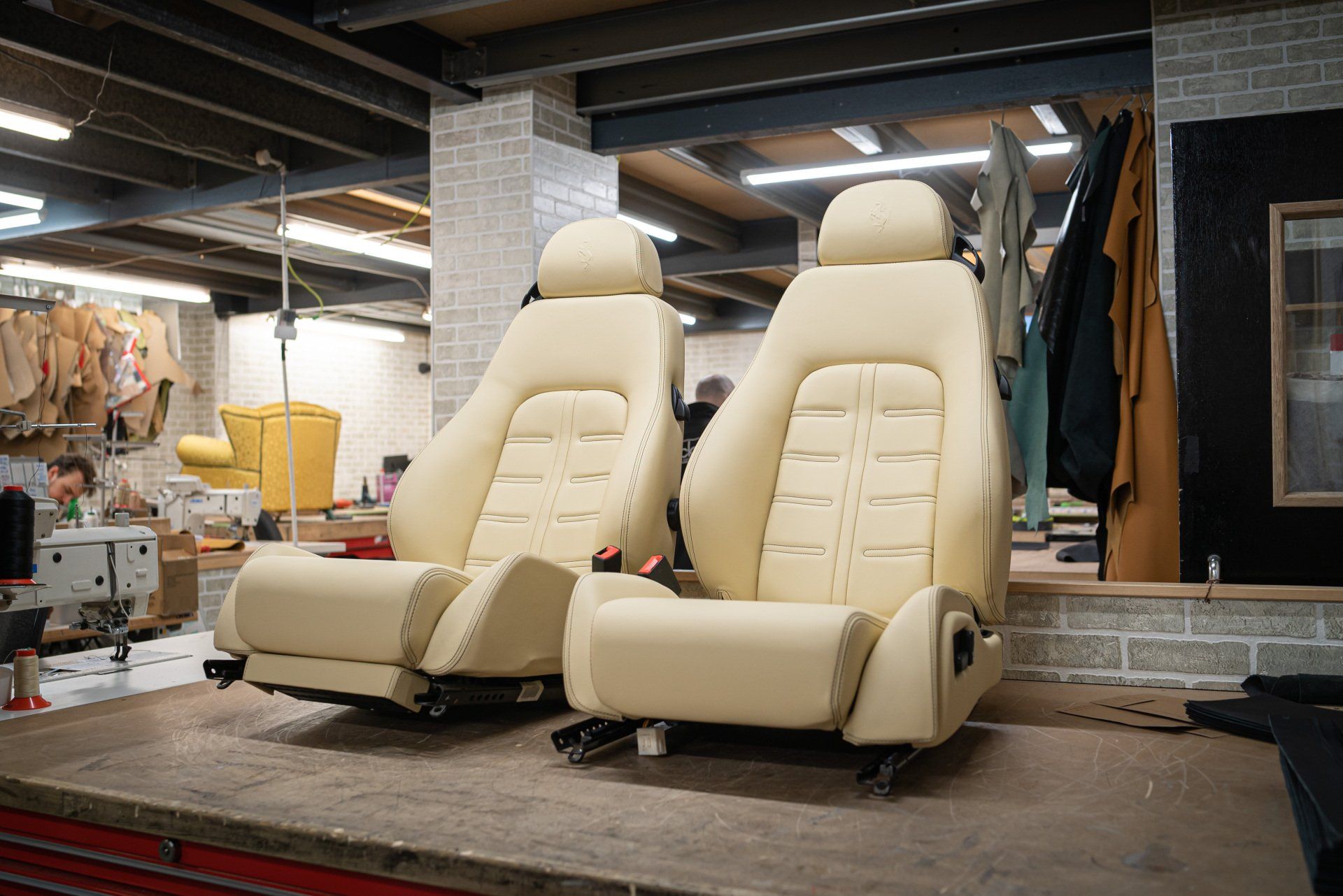 A pair of Ferrari 575 seats came to d:class HQ for a full retrim. We used Autolux Magnolia nappa leather supplied from @ukhideco . The headrests have been embossed with Ferrari's prancing horse emblem, contrast black stitching has been sewn into the seat centres recreating the OEM design and both upper and lower seat bolsters.