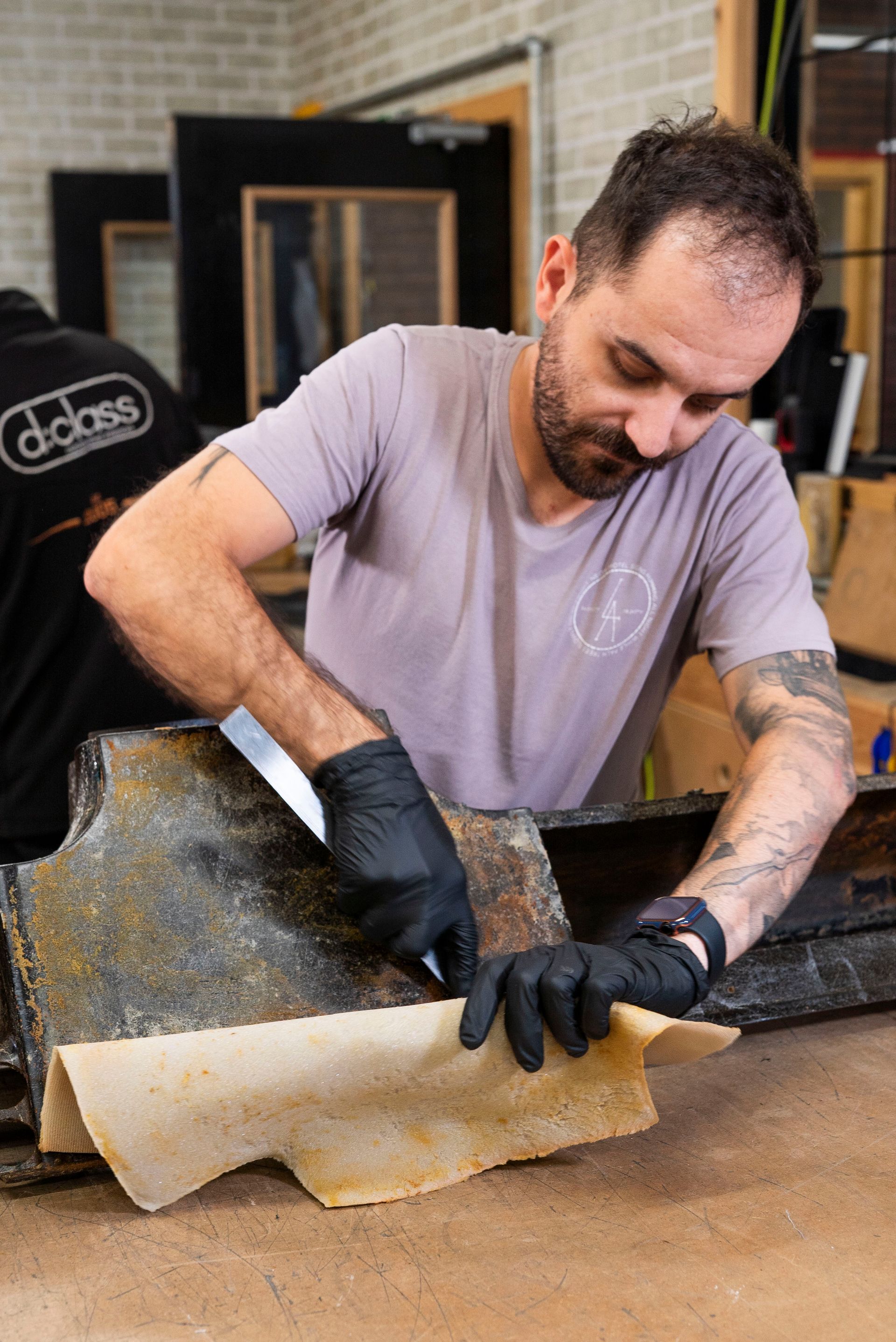 Next up was stripping the seats down to their foams, and removing any other old trim from the dashboards and doorcards. As previously mentioned, the vehicle is not in too bad shape, especially the seats. However, our customer wants to ensure a consistent finish so everything must be replaced to look brand new. some steam was applied to the seat foam, this helps the foam almost 'inflate' back to its original shape. If foams are ripped or split, we can attempt a repair, but if not new foams can be ordered or made from scratch.
