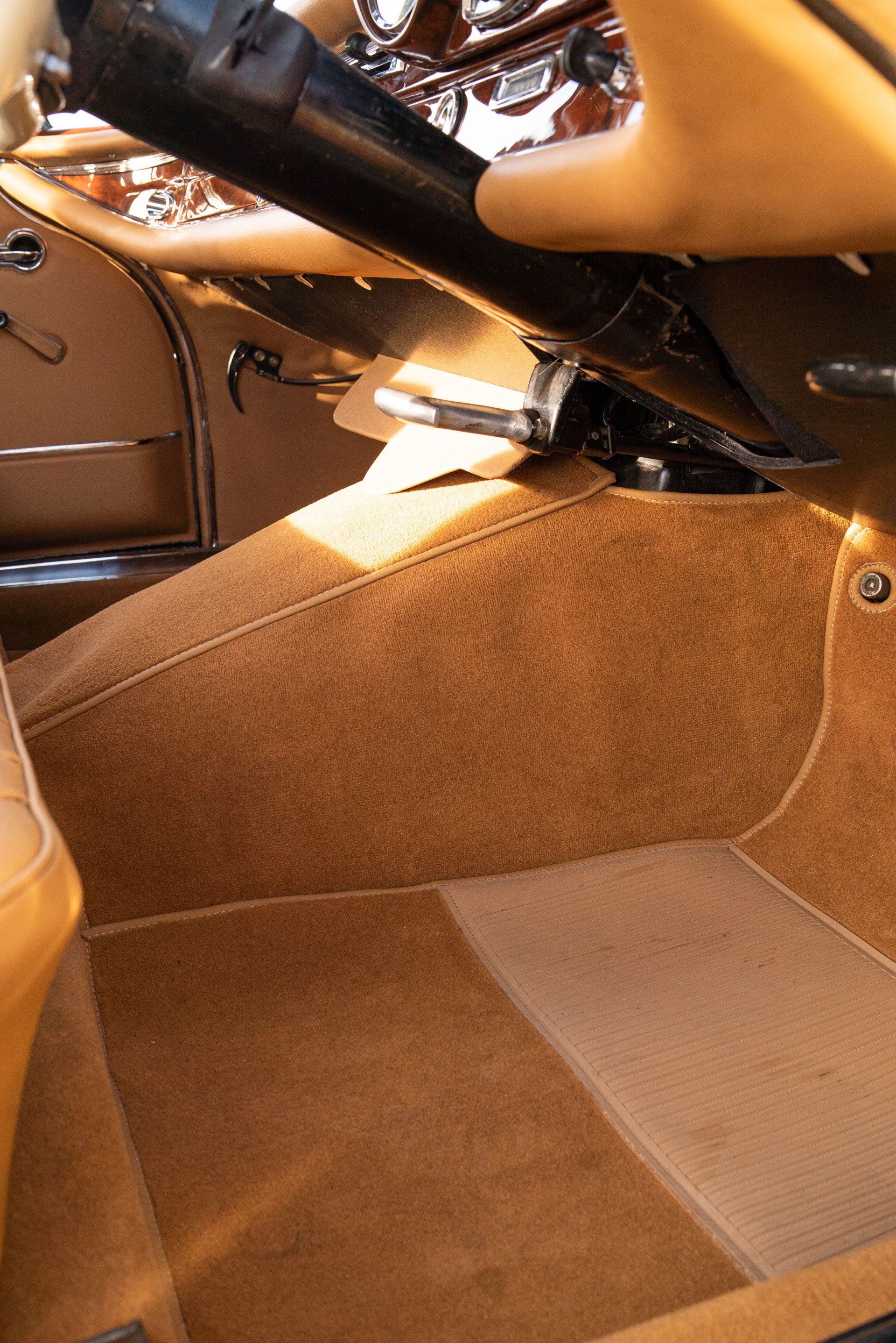 Bespoke velour carpets and floor mats have been created to compliment the new look with matching leather binding. Last, but not least, we have the vehicles hood, which now boasts new headlining, foam padding and rear screen. The mohair cover has been reused due to its good condition. Lastly, the wood trim has been returned to its former glory making this W111 quite unique. #dclassauto