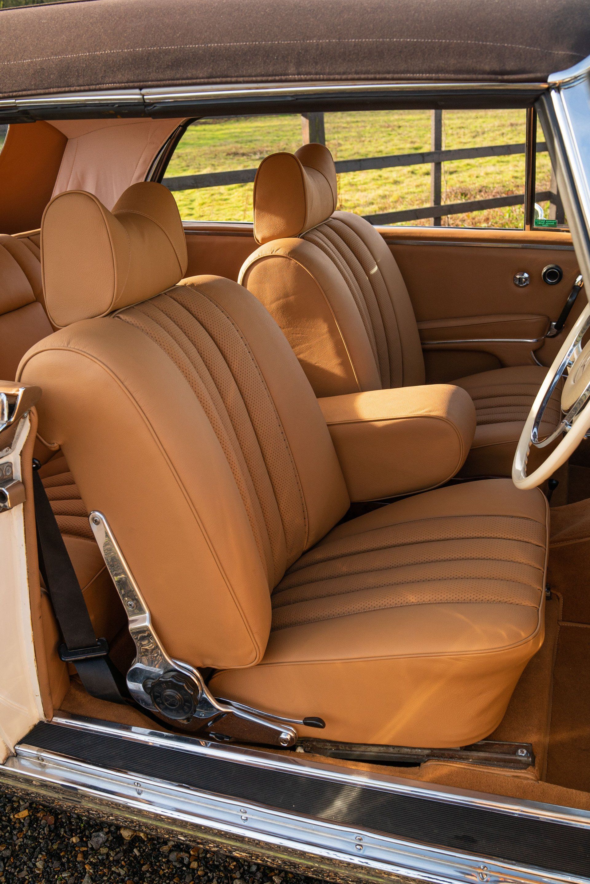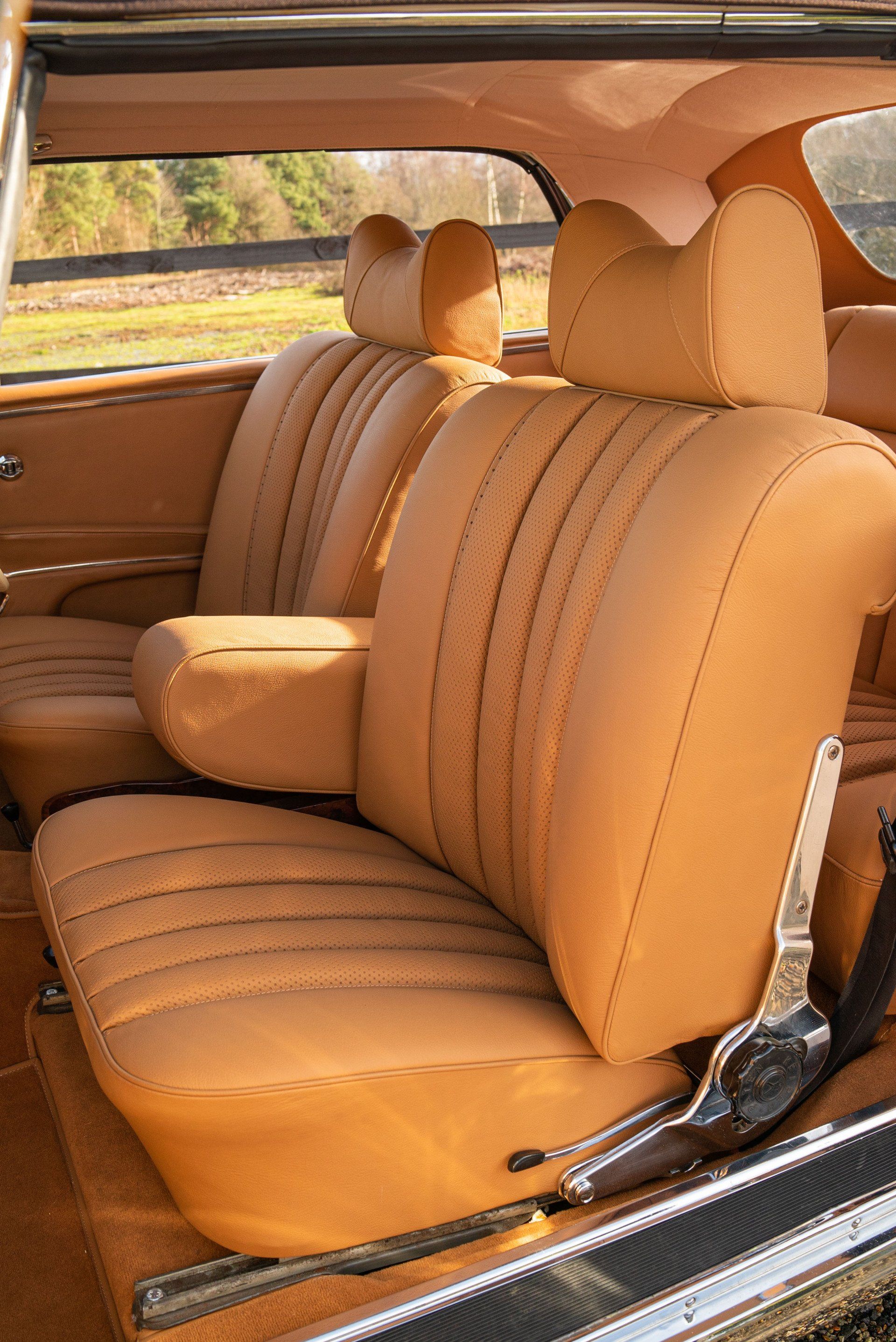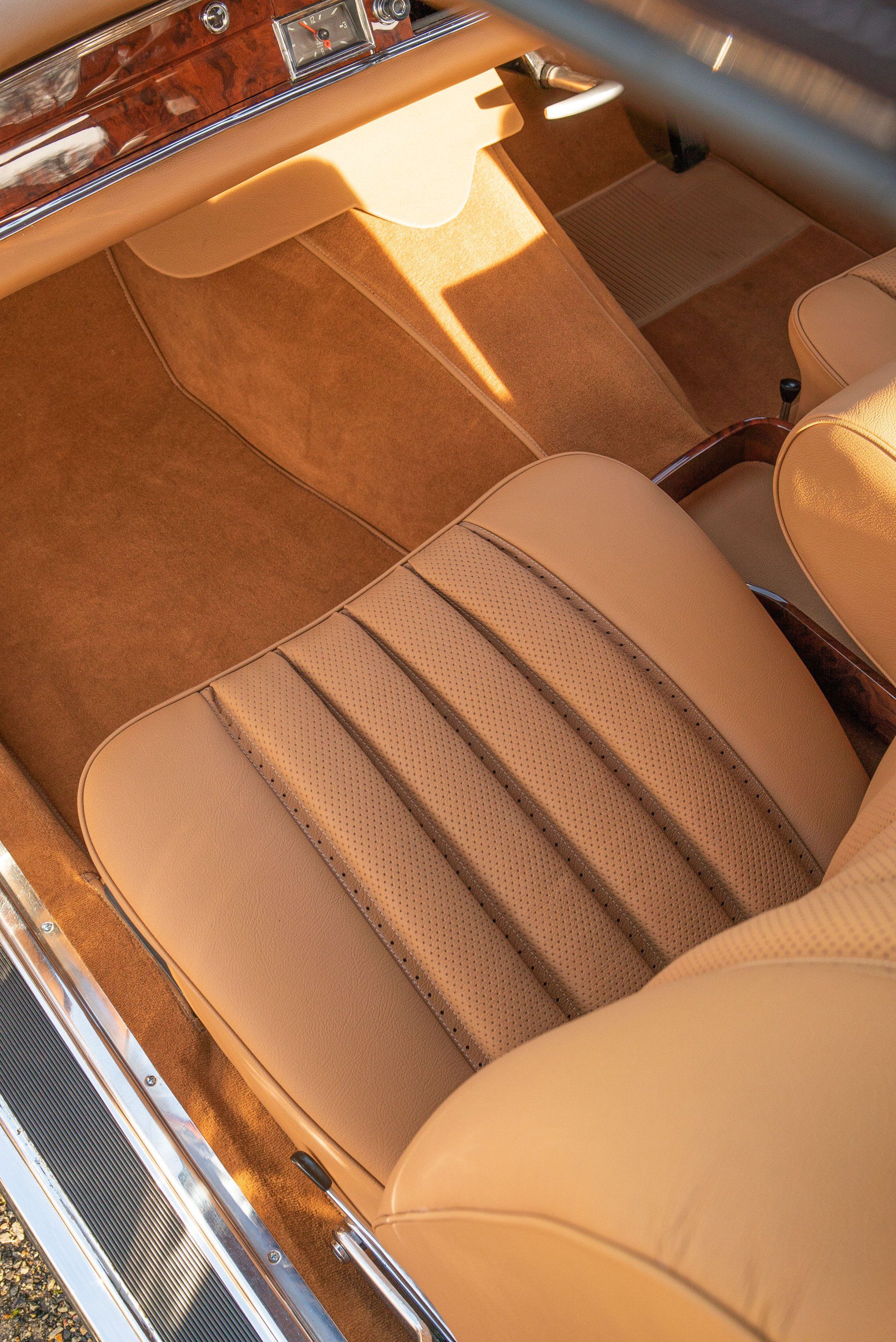 This Mercedes-Benz W111 cabriolet has been transformed into something quite fantastic at d:class. The vehicles front and rear seats have been professionally retrimmed in grained tan leather, with period-correct basketweave perforated seat centres.