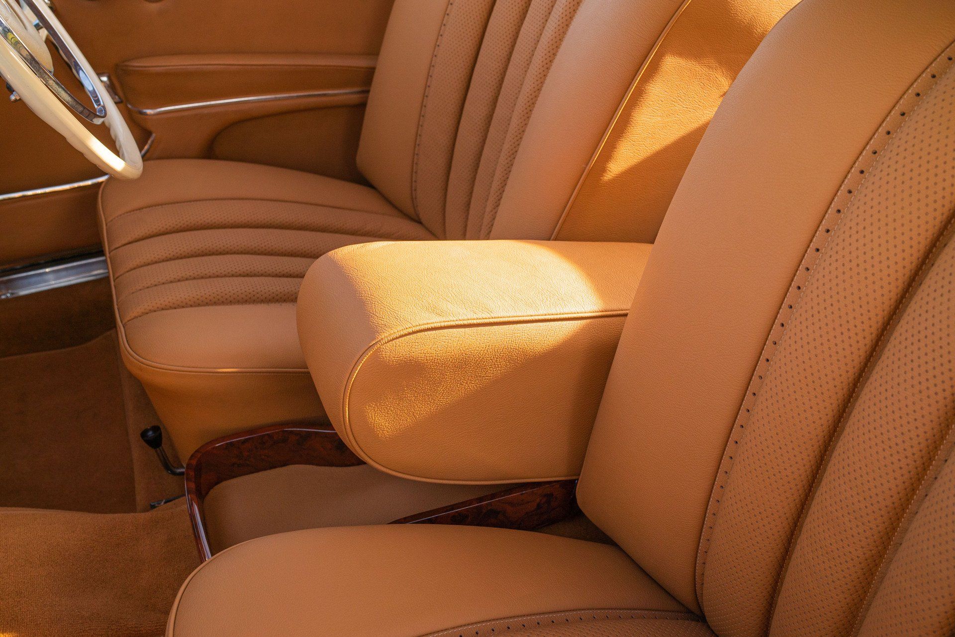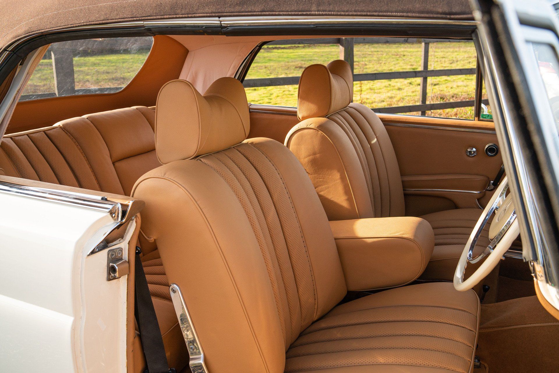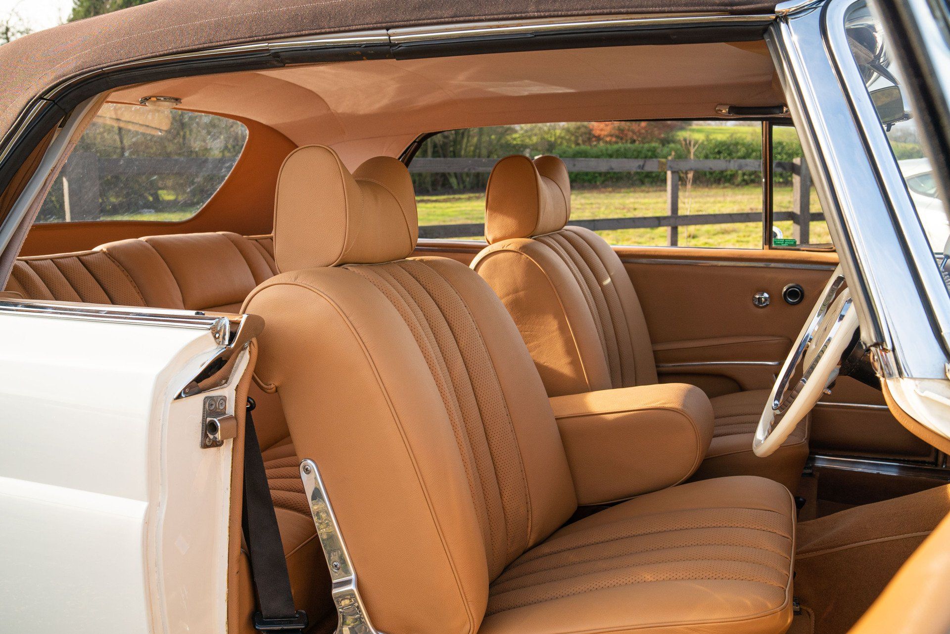 This Mercedes-Benz W111 cabriolet has been transformed into something quite fantastic at d:class. The vehicles front and rear seats have been professionally retrimmed in grained tan leather, with period-correct basketweave perforated seat centres.
