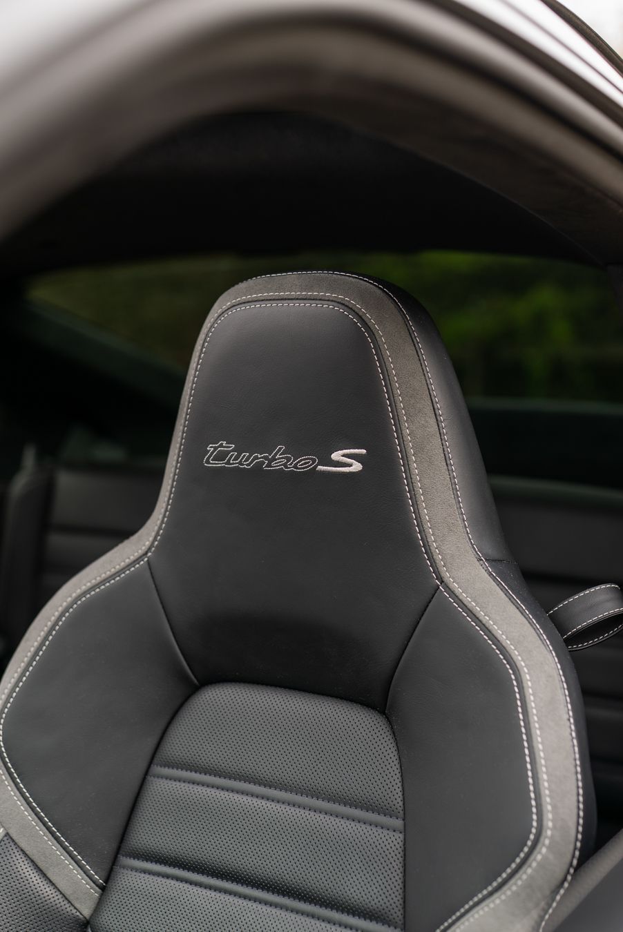 This Porsche 911 Turbo S came to d:class for a partial seat and door card retrim. The customer wanted a band of grey Alcantara flowing around the seat base and back, matched as closely as possible to the car’s exterior colour. We were also tasked with recreating the debossed ‘Turbo S’ as an embroidered logo. Finally, the door card centres were retrimmed in matching grey Alcantara, complete with OEM-style stitch lines. Not a huge job, but a well-executed and highly effective OEM-like upgrade.