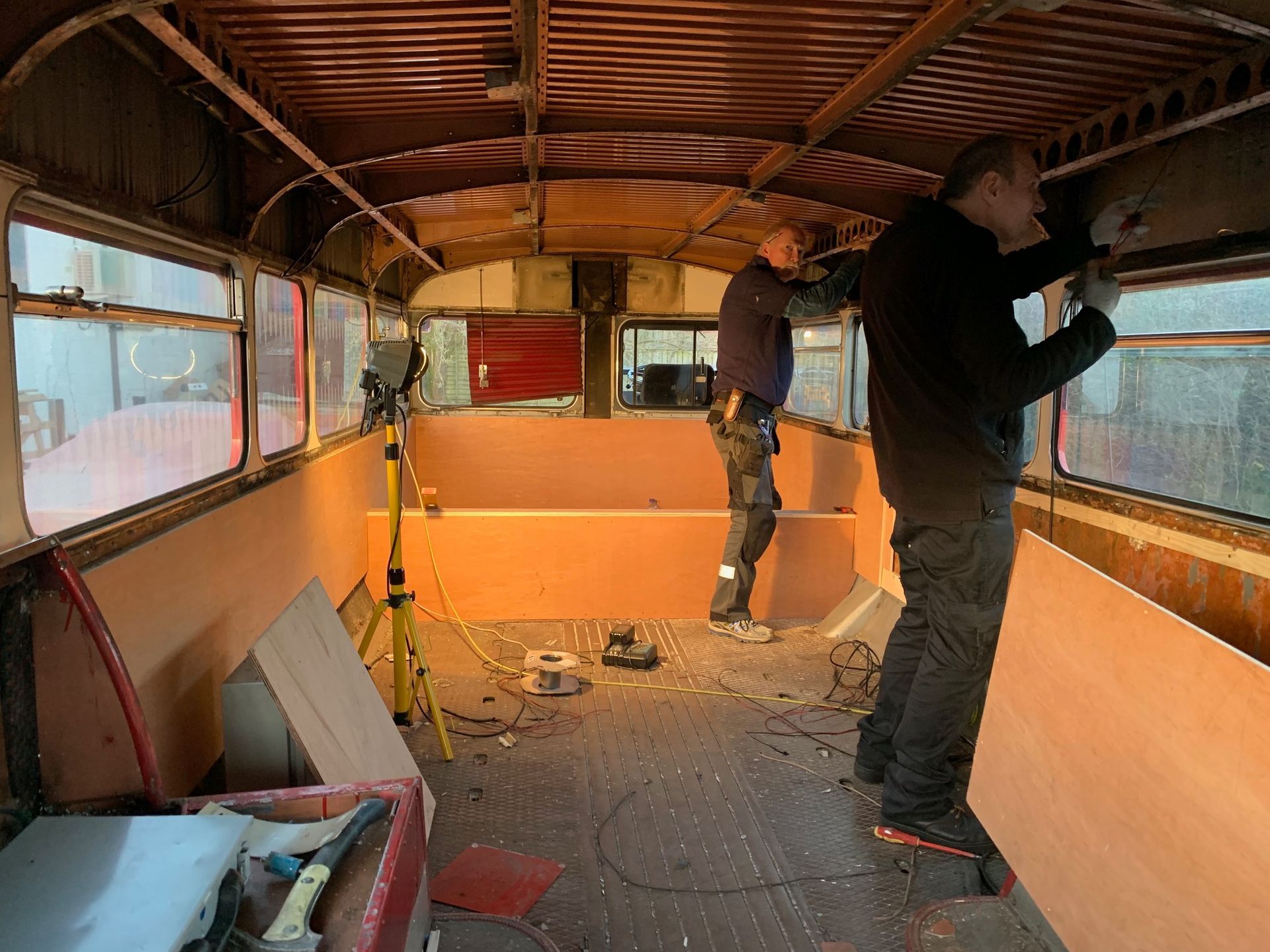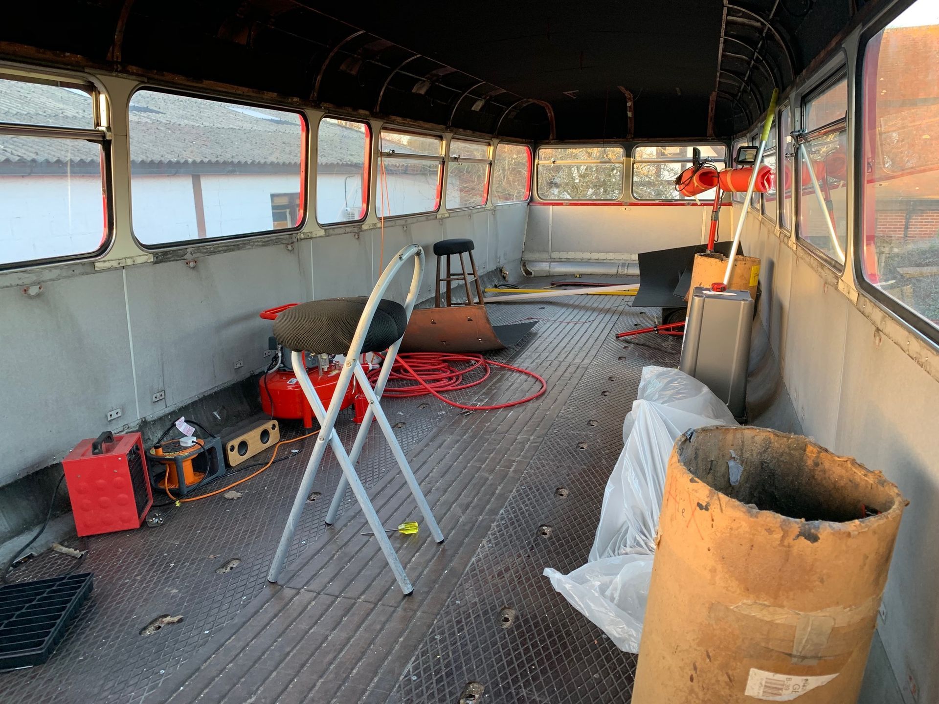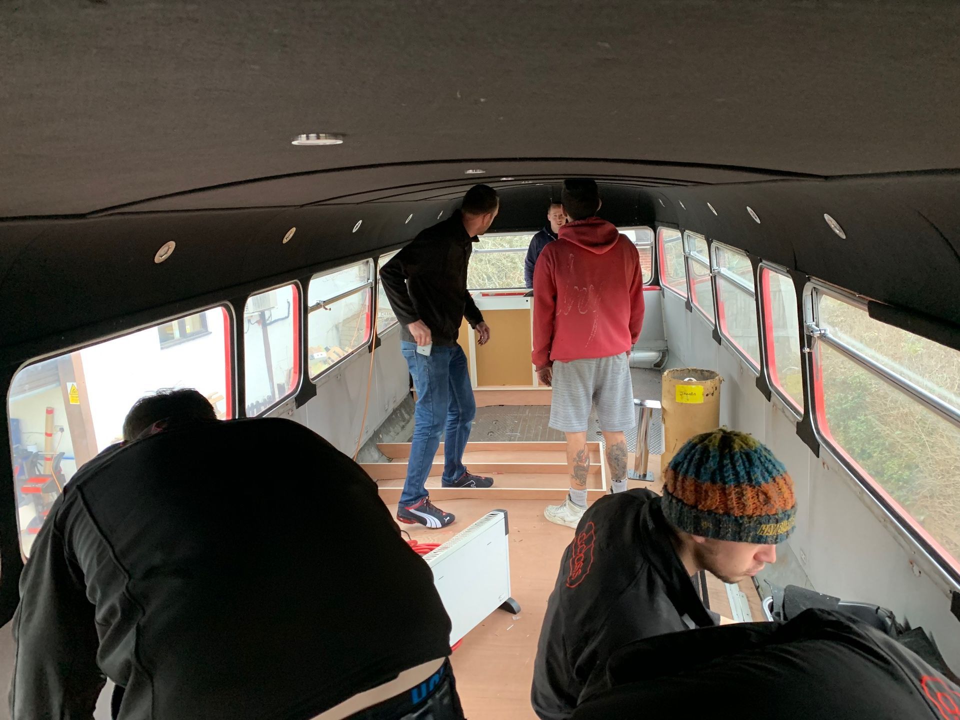 We received the bus in a real sorry state. it had definitely earnt it's retirement which unfortunately was pulled out of for this retrim. First step was to remove absolutely everything and start again. So the old seats were removed, wall panels, roof panels, the lot. We then rebuilt the buses foundations by replacing any framing, installing insulation, and running brand new wiring throughout. The goal was to have plenty of lighting, heating, and even some appliances like a fridge and TV for the the adults area above.