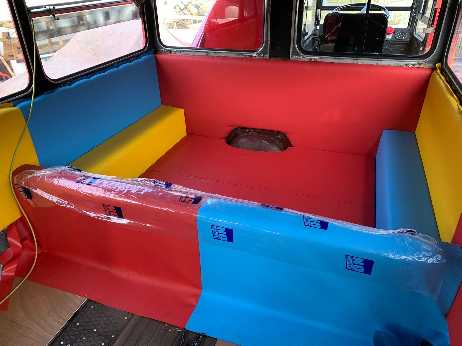 Another wild d:class retrim, something we doubt we will ever be asked to do again, but honoured we were tasked to undertake such a large job nonetheless. This Routemaster was brought to us to convert into a child's soft play area downstairs, with a lounge/bar area upstairs. You may be thinking, "what a cool business idea" and you would be right to think so. However, this was privately purchased and commissioned for the owners son's 3rd birthday party.... A big flex indeed.