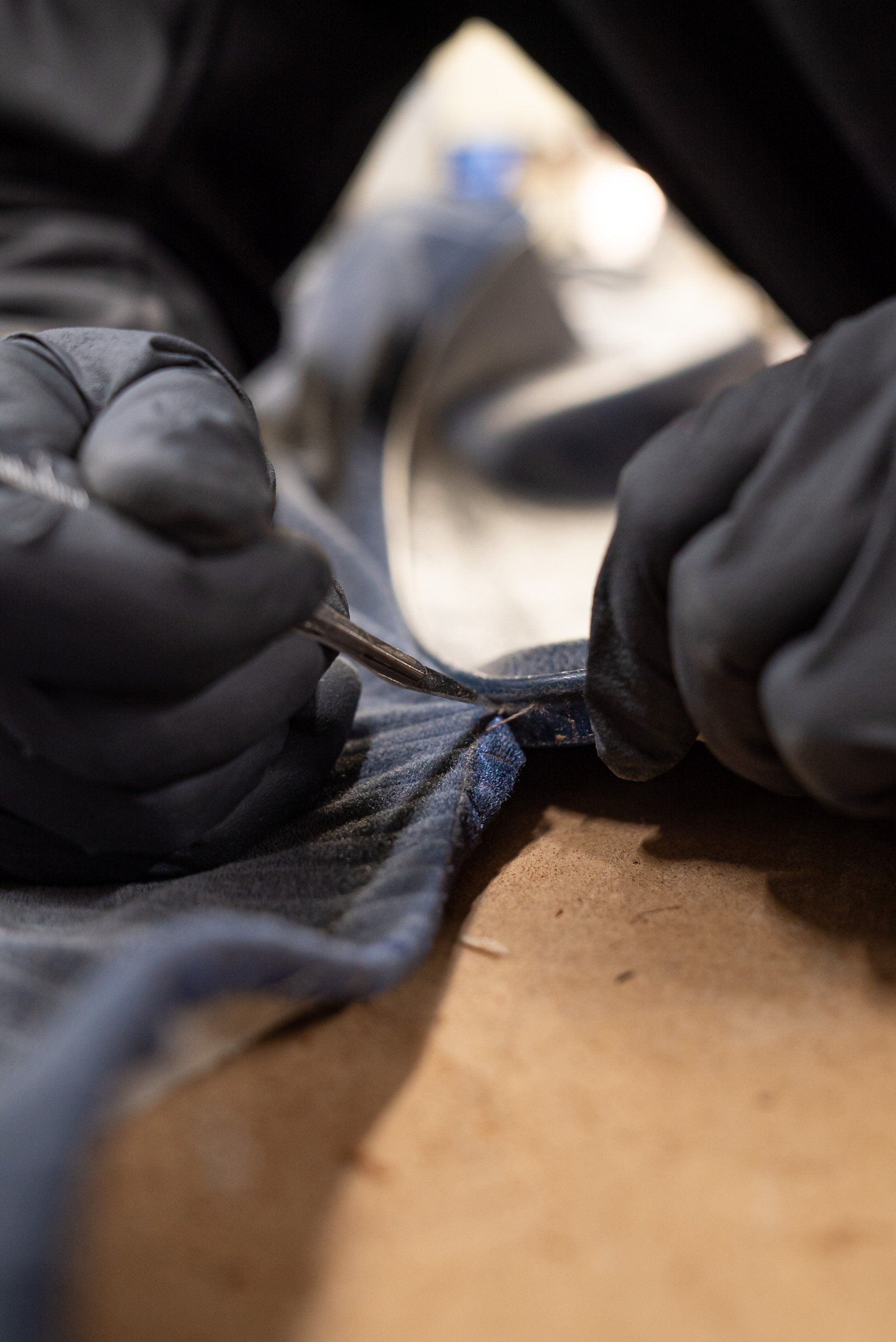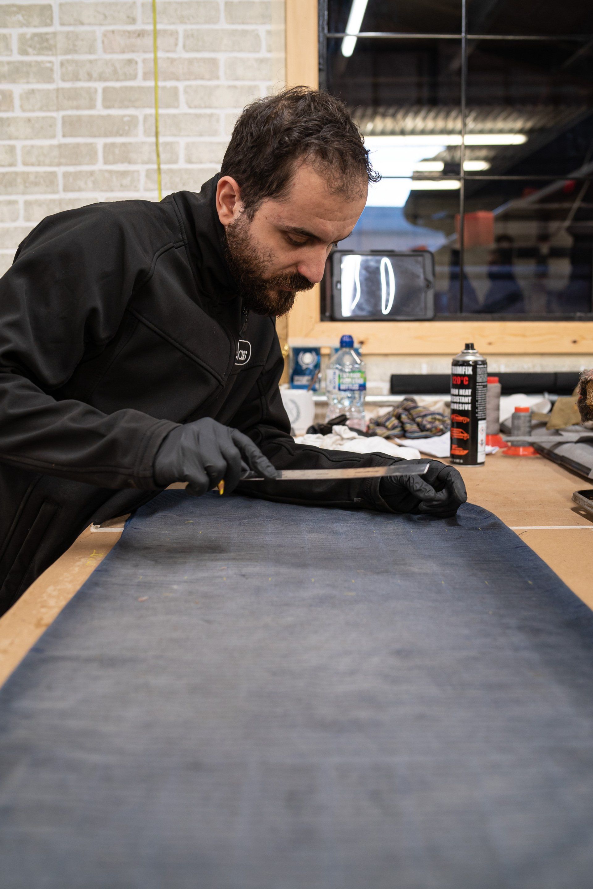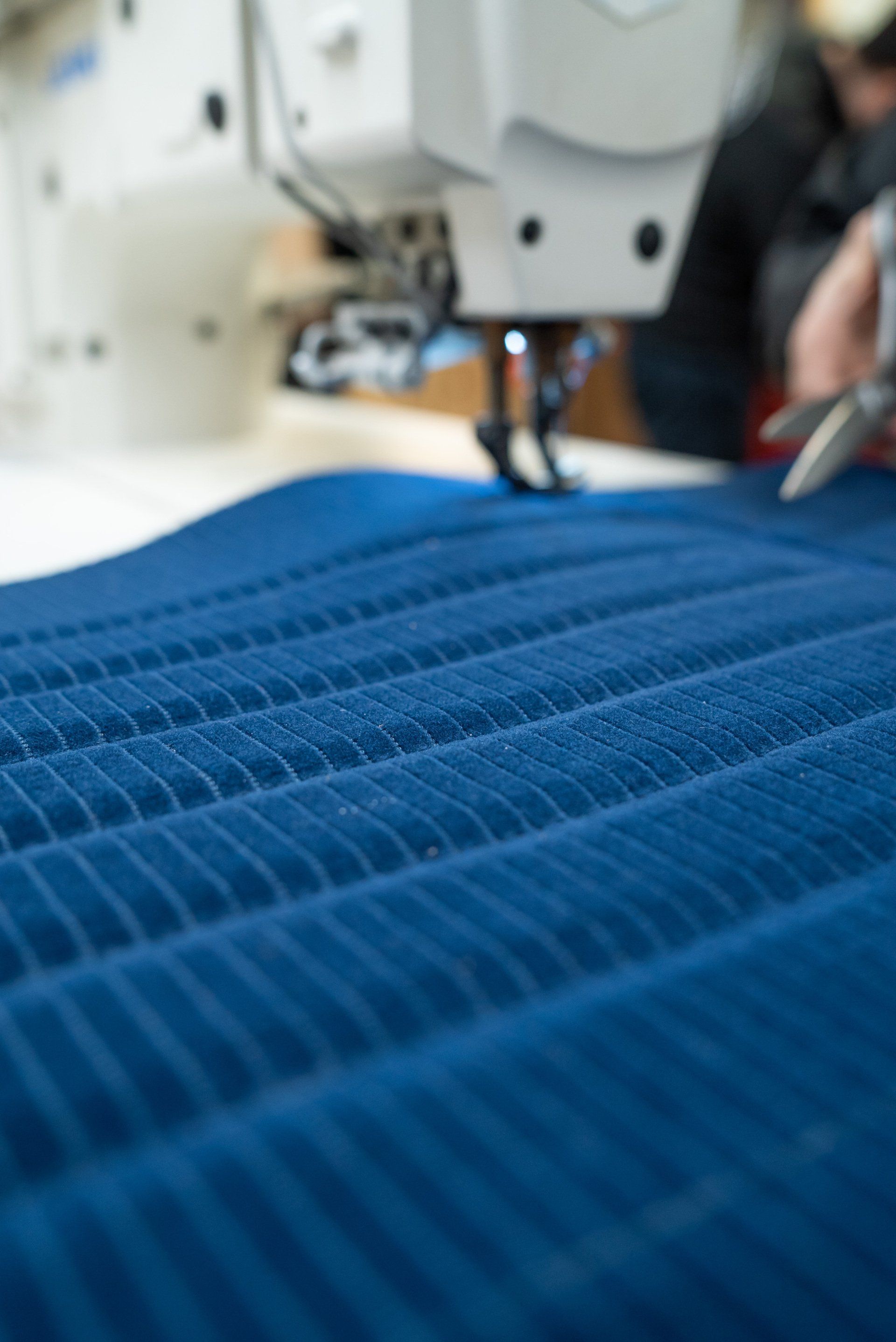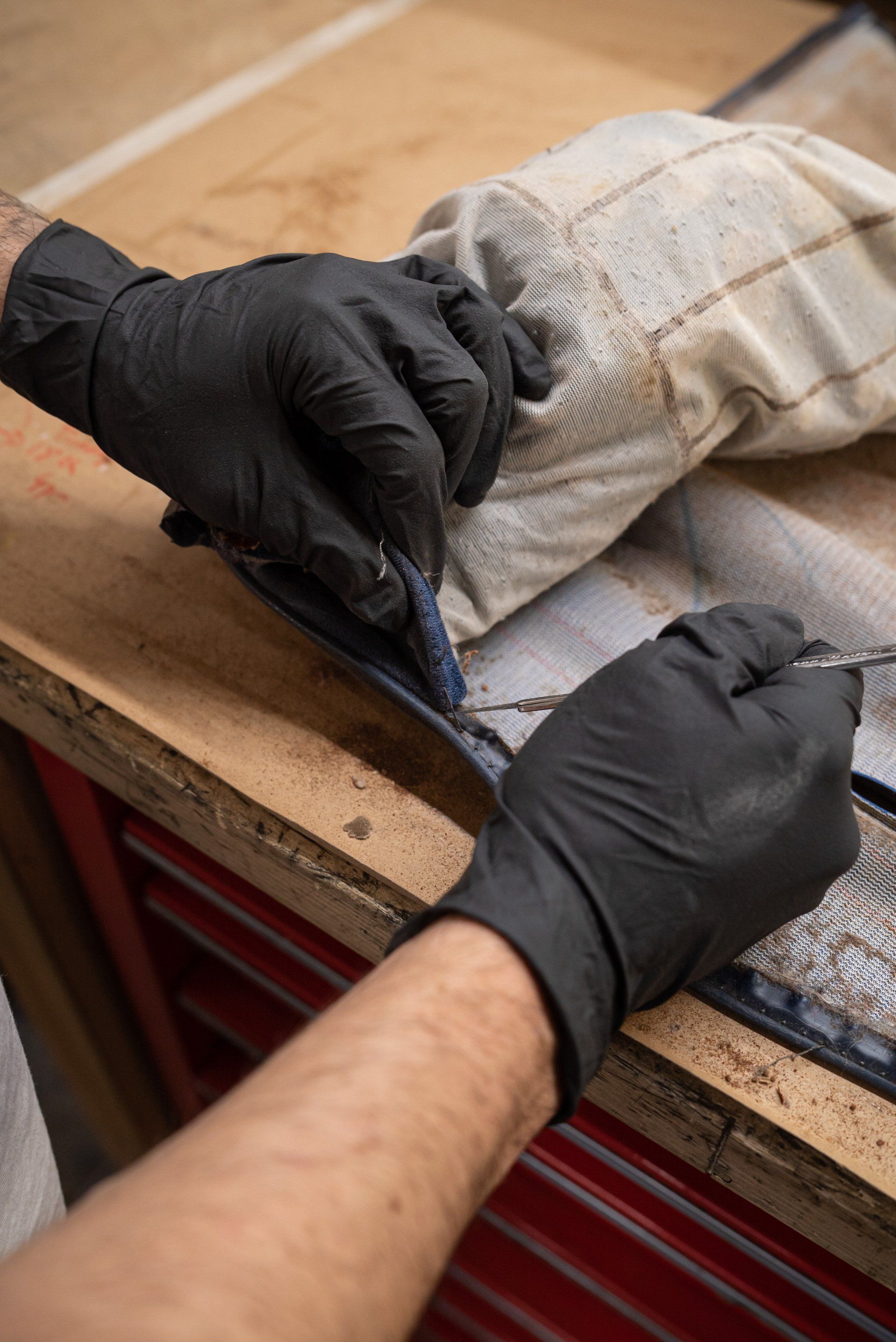 New horse hair pads have been supplied and fitted to the front seat frames to ensure the customer is totally satisfied. As previously mentioned, blue velour has been selected to replace what was and blue vinyl for the borders and piping.