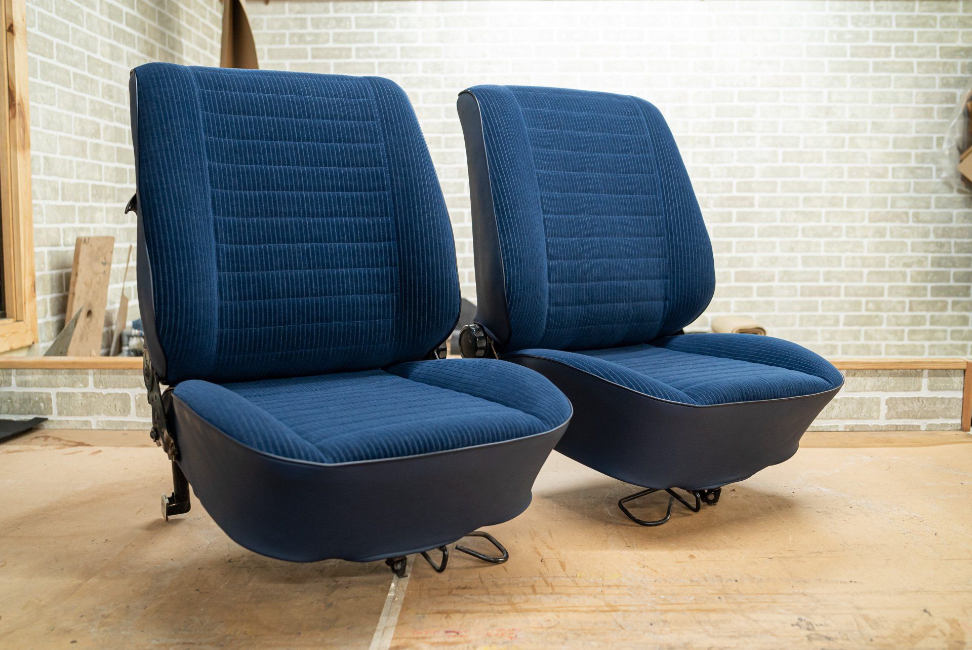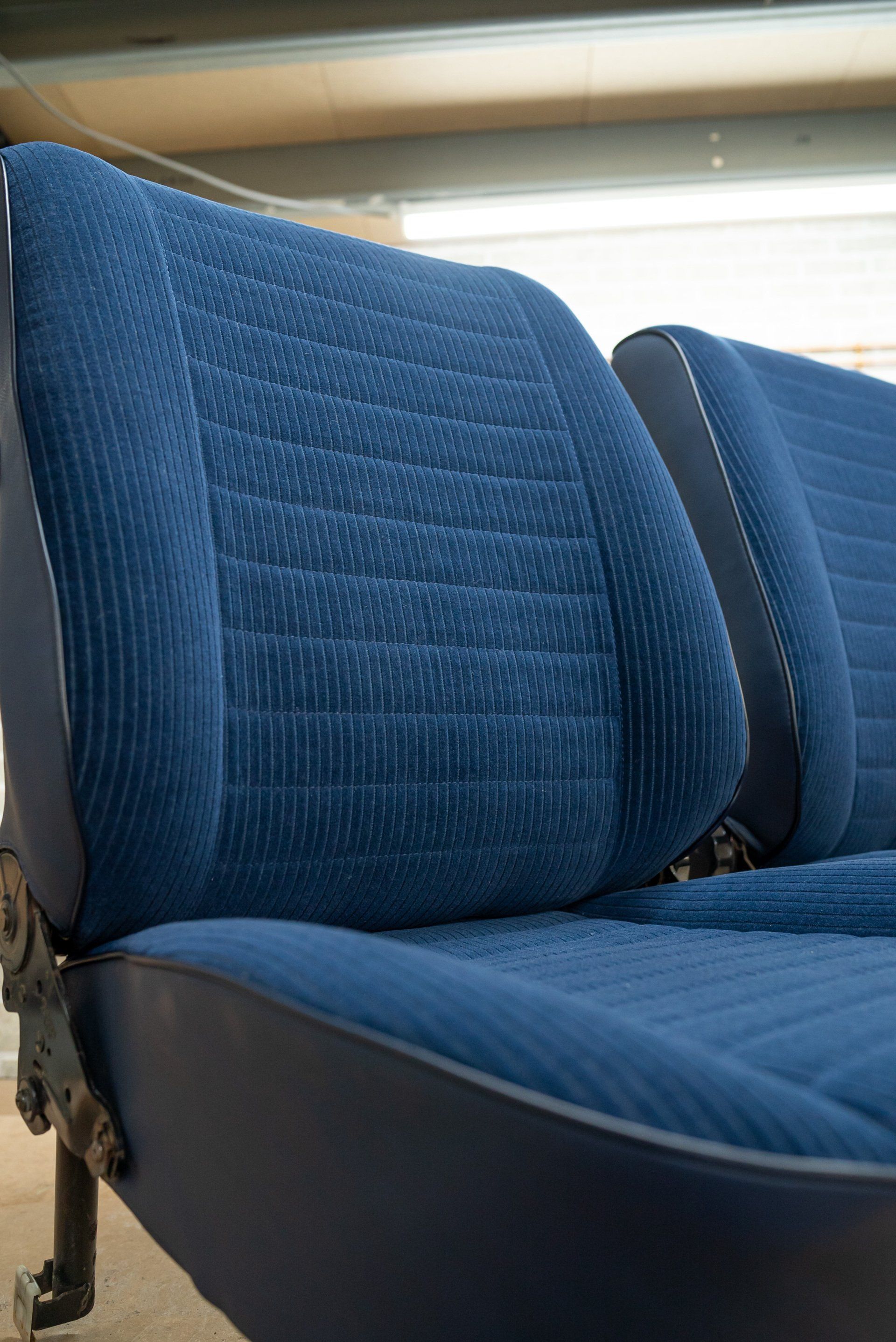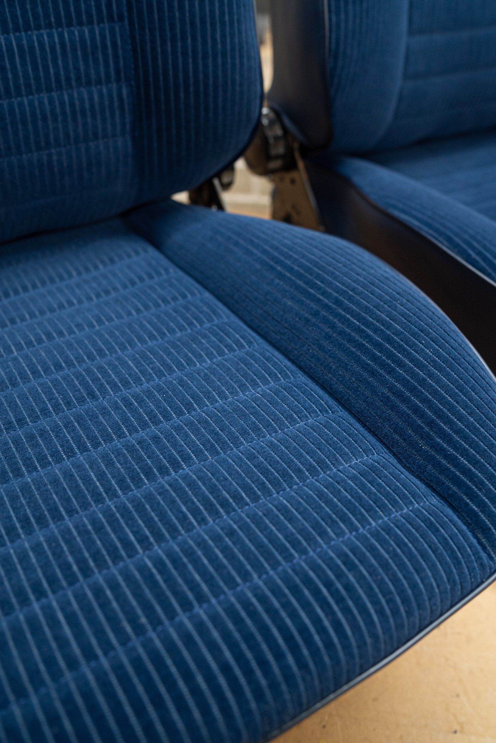 This set of Volkswagen Beetle seats have seen quite the transformation. The customer originally contacted us through our d:class autoshop for some blue velour. The material that was purchased was to be used for a retrim, however this changed when the customer collected their material. Once they had seen the standard of our work, they decided to book the retrim in with ourselves.